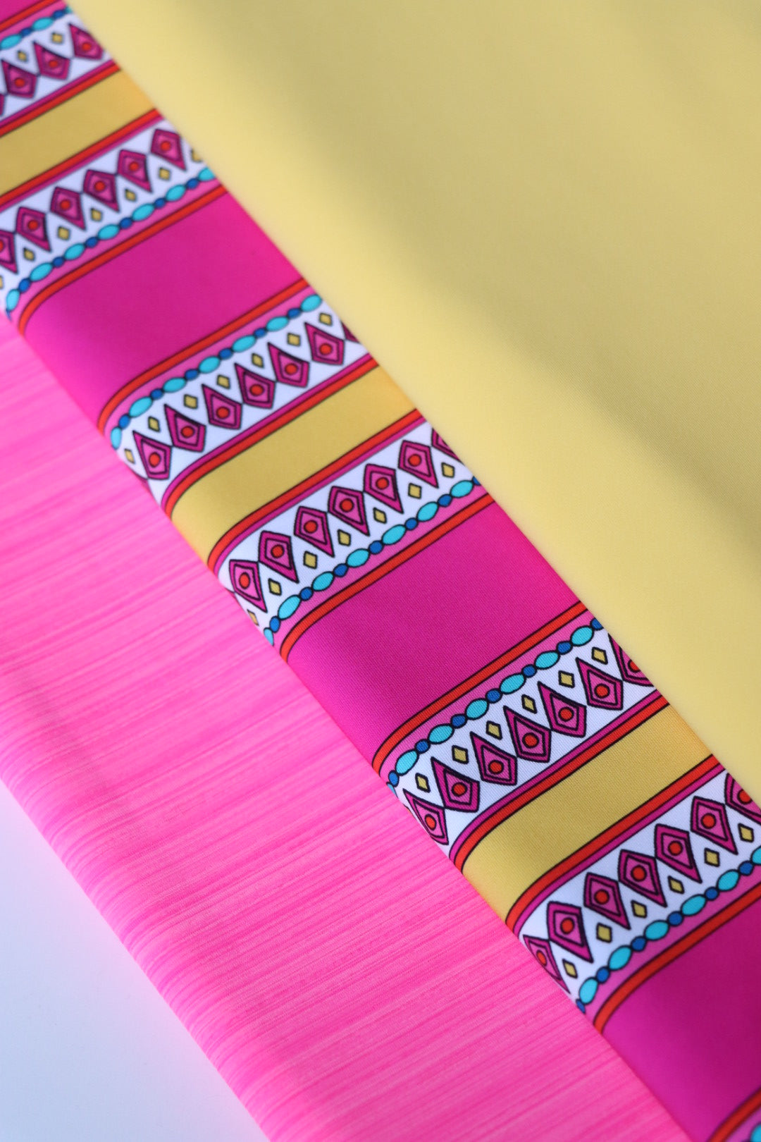 Each trio is intentionally paired to coordinate in color, print, and fabric hand, creating a cohesive bundle that’s ready for everything from streamlined activewear to mix-and-match swim sets. The selection is deliberate, giving you a beautifully balanced palette without the overwhelm of choosing individual cuts.