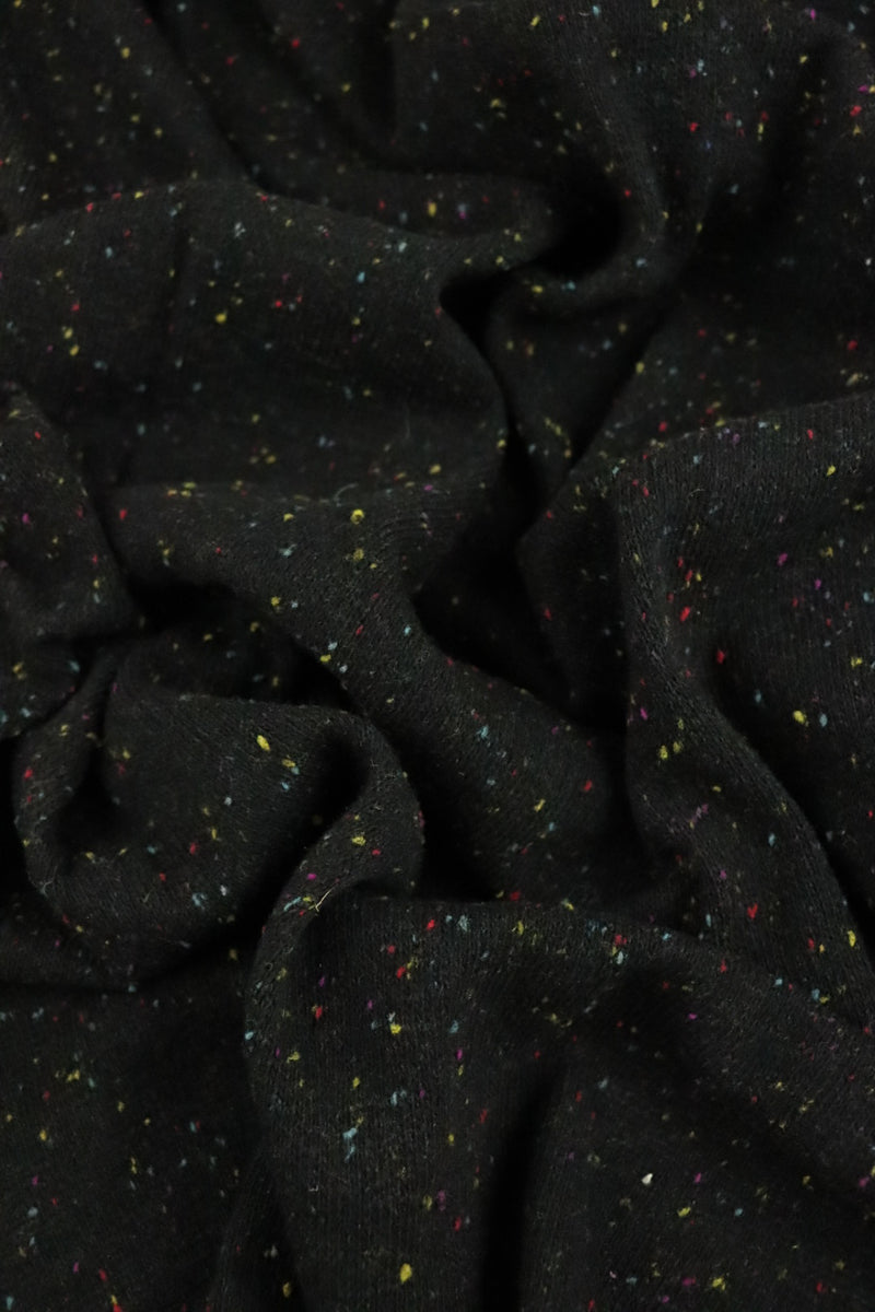 1YD PRECUT; Black Italian Speckled Wool Silk Sweater Knit