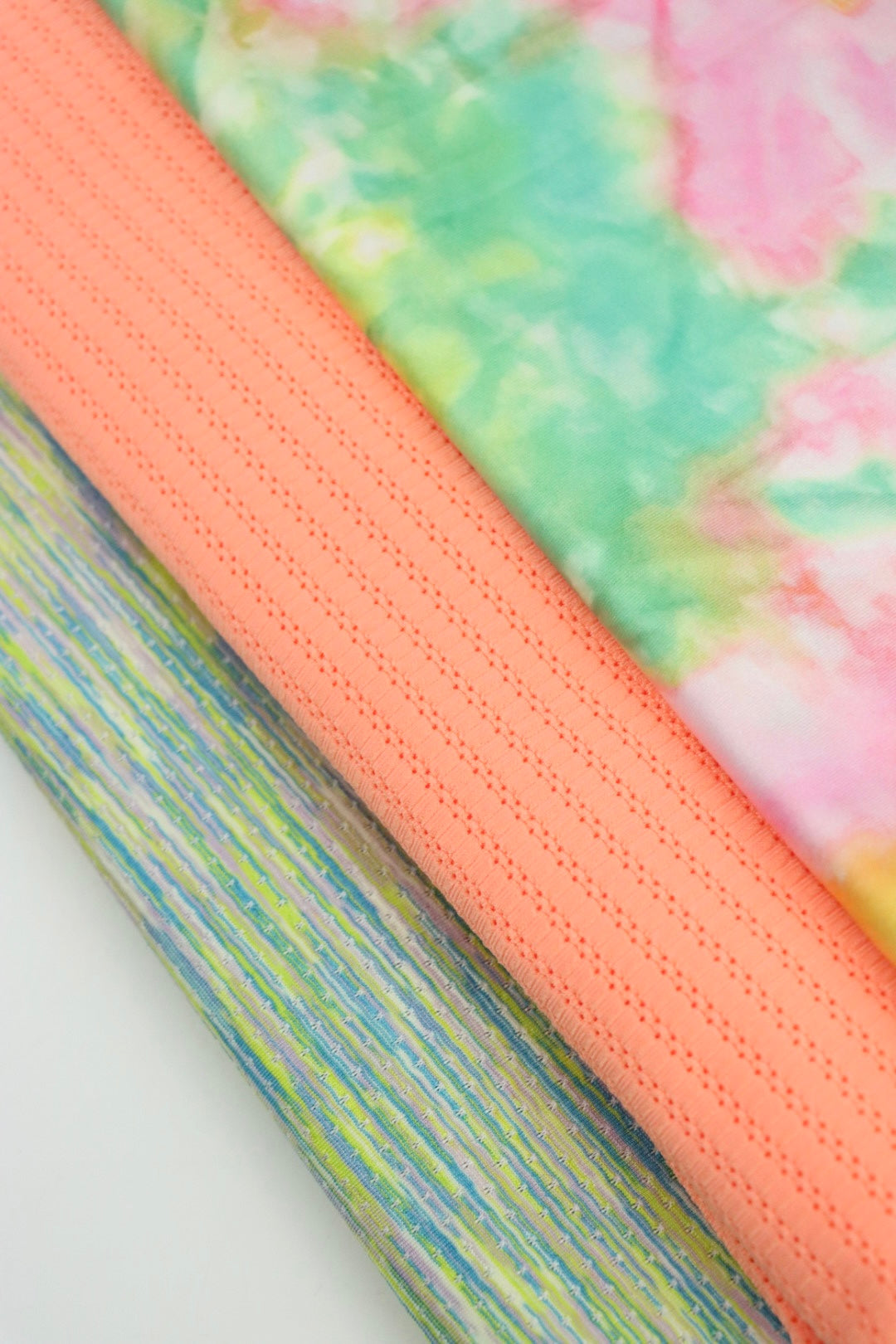 Each trio is intentionally paired to coordinate in color, print, and fabric hand, creating a cohesive bundle that’s ready for everything from streamlined activewear to mix-and-match swim sets. The selection is deliberate, giving you a beautifully balanced palette without the overwhelm of choosing individual cuts.
