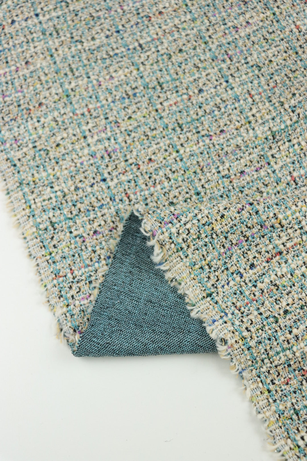 Blue/Ivory Tweed Boucle Jacquard Knit