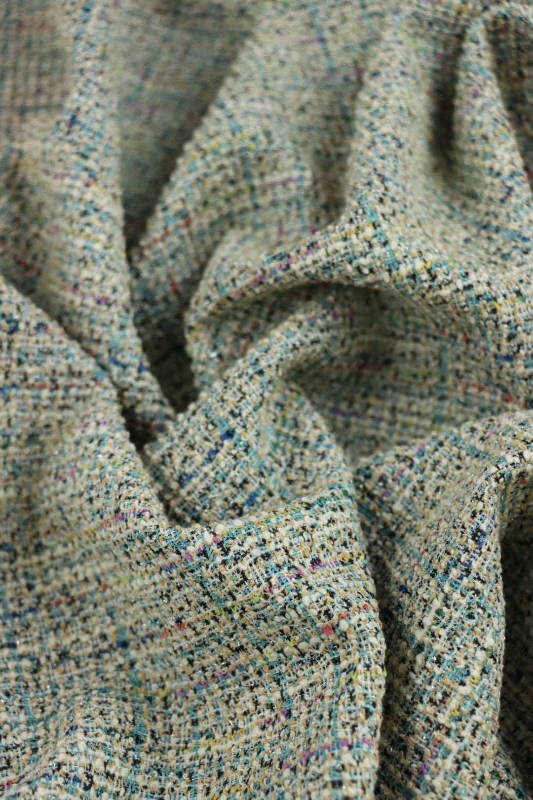 A richly textured knit that brings the look of classic bouclé or tweed with the comfort of a knit. From afar it reads polished and refined; up close, the surface reveals beautiful depth, flecks of color, and subtle detail.