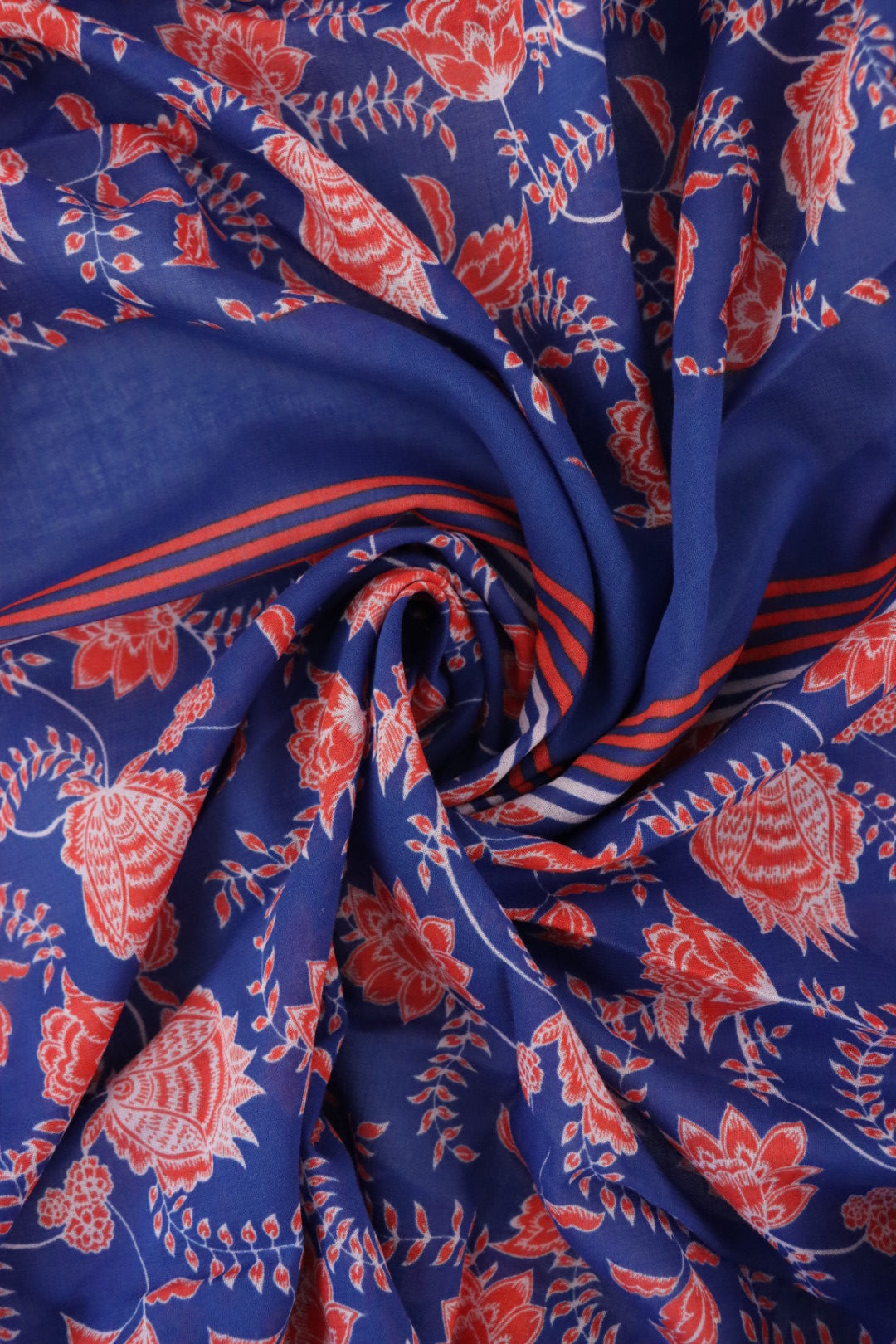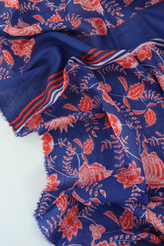 By The Panel | Red, White & Blue Floral & Stripe Rayon Organza
