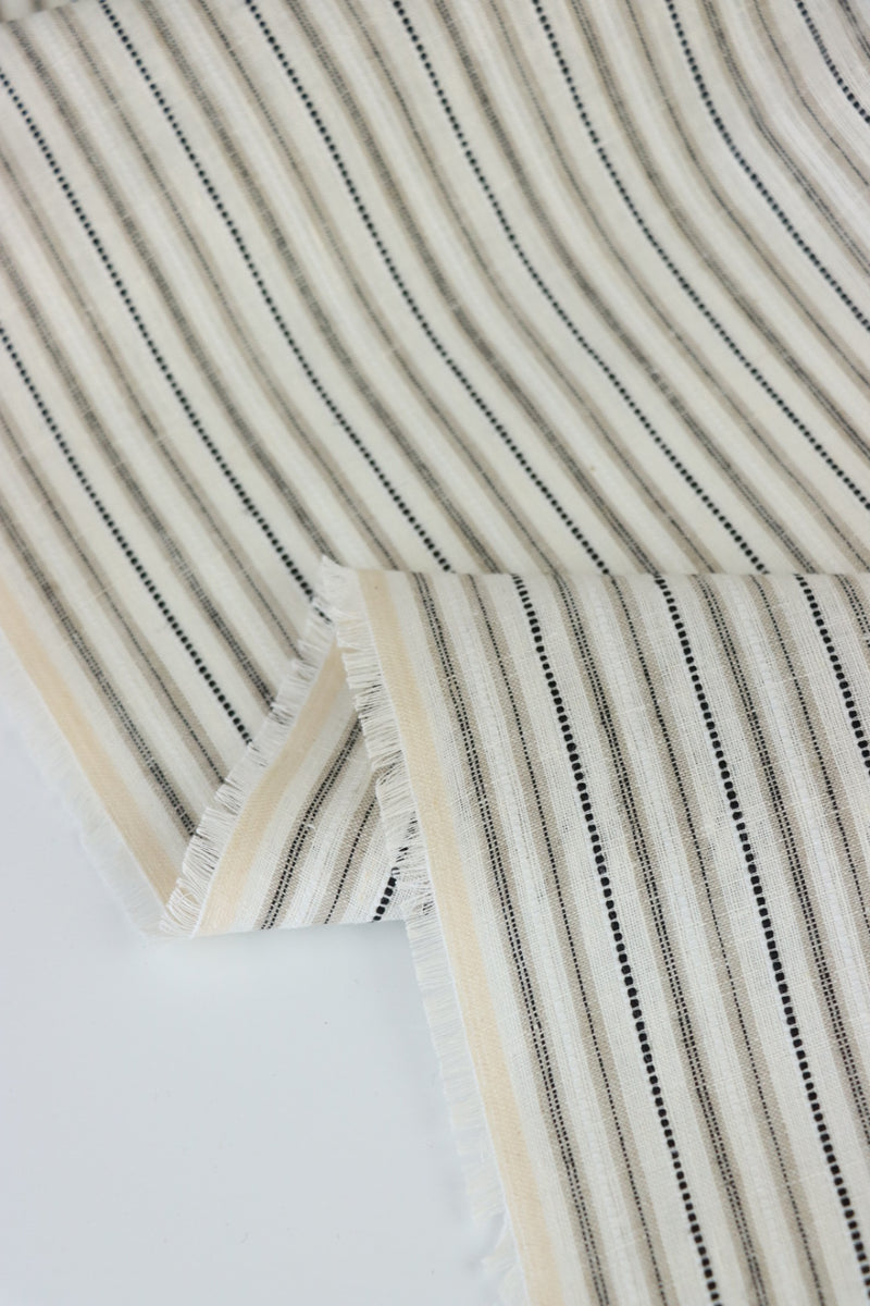 Taupe/Black/Ivory Ticking Stripe 100% Linen