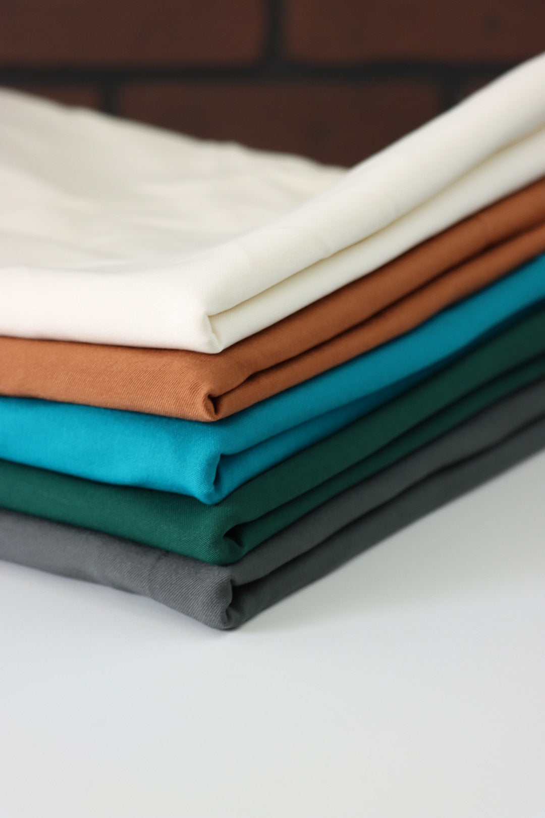 This stretch twill is a woven fabric with a high spandex content which gives this fabric superior 50% stretch and excellent recovery. The rayon and nylon fibers work together to create a soft hand that is both strong and durable, exactly what you want out of a pant fabric! This fabric is great for any garment that you might like a touch of stretch or give, such as pants, skirts, jackets and more.