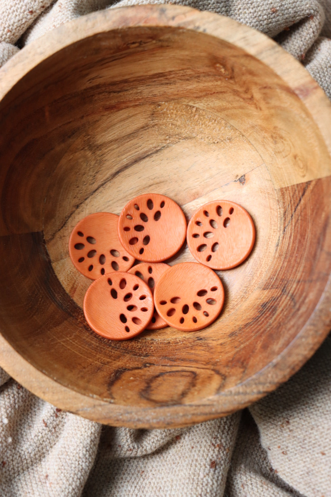 Bring a touch of artistry to your handmade garments with these round buttons, featuring a unique lotus-inspired cutout design. The delicately textured surface that catches the light beautifully, these buttons are available in a rich spectrum of colors—from earthy neutrals to vibrant jewel tones.