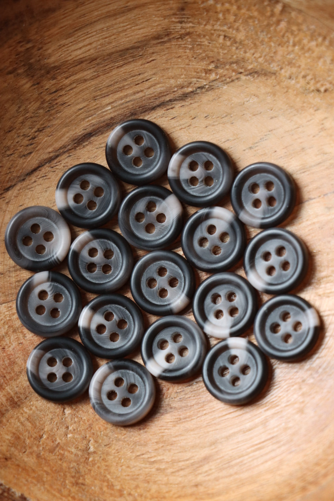 These four-hole marbled buttons are a staple choice for sewists who love a timeless finish. With a glossy surface and subtle swirling patterns, each button has slight variations, making every one unique.