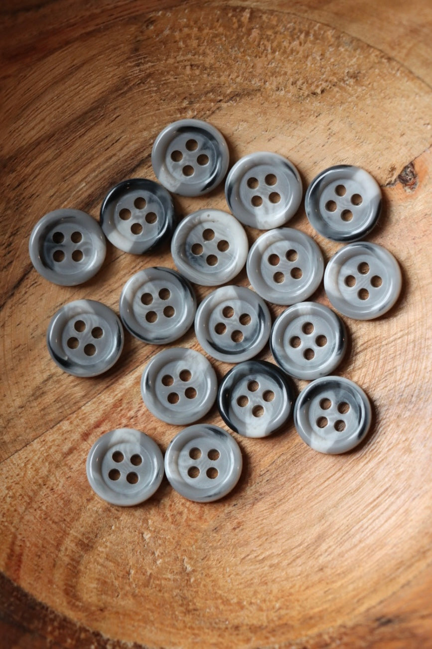 These four-hole marbled buttons are a staple choice for sewists who love a timeless finish. With a glossy surface and subtle swirling patterns, each button has slight variations, making every one unique.