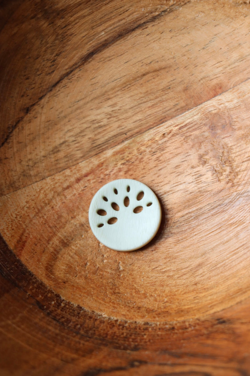 Bring a touch of artistry to your handmade garments with these round buttons, featuring a unique lotus-inspired cutout design. The delicately textured surface that catches the light beautifully, these buttons are available in a rich spectrum of colors—from earthy neutrals to vibrant jewel tones.