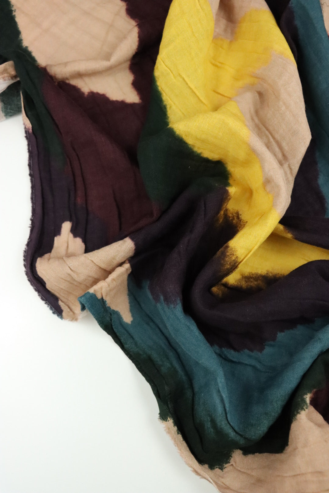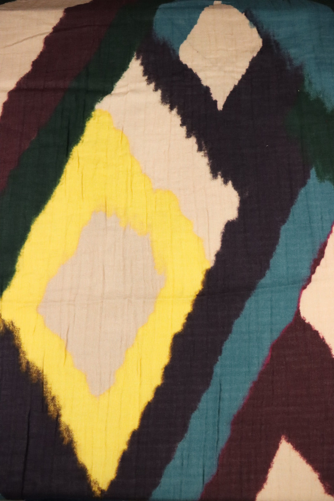 Eggplant/Teal/Yellow Shibori Diamonds Cotton Gauze | Designer Deadstoc