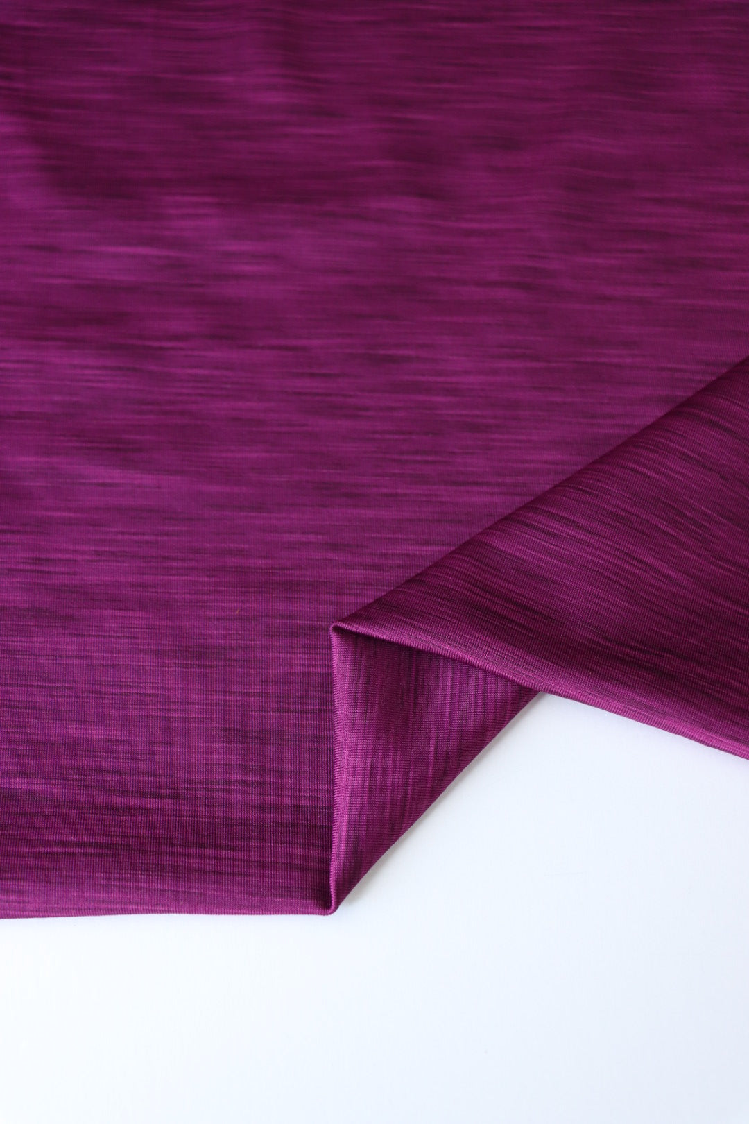 These space dyed fabrics offer rich, dimensional color with a refined, elevated look. The subtle variation adds depth and interest while still feeling wearable and versatile. A medium weight knit with a smooth hand, comfortable structure, and four way stretch with excellent recovery. Designed with performance in mind, these fabrics are quick drying, moisture wicking, and antimicrobial, making them ideal for both activewear and everyday wear. Slightly lighter than some may prefer for standalone leggings, but well suited for layering pieces, bike shorts, sports bras, activewear tops, and fitted everyday garments.