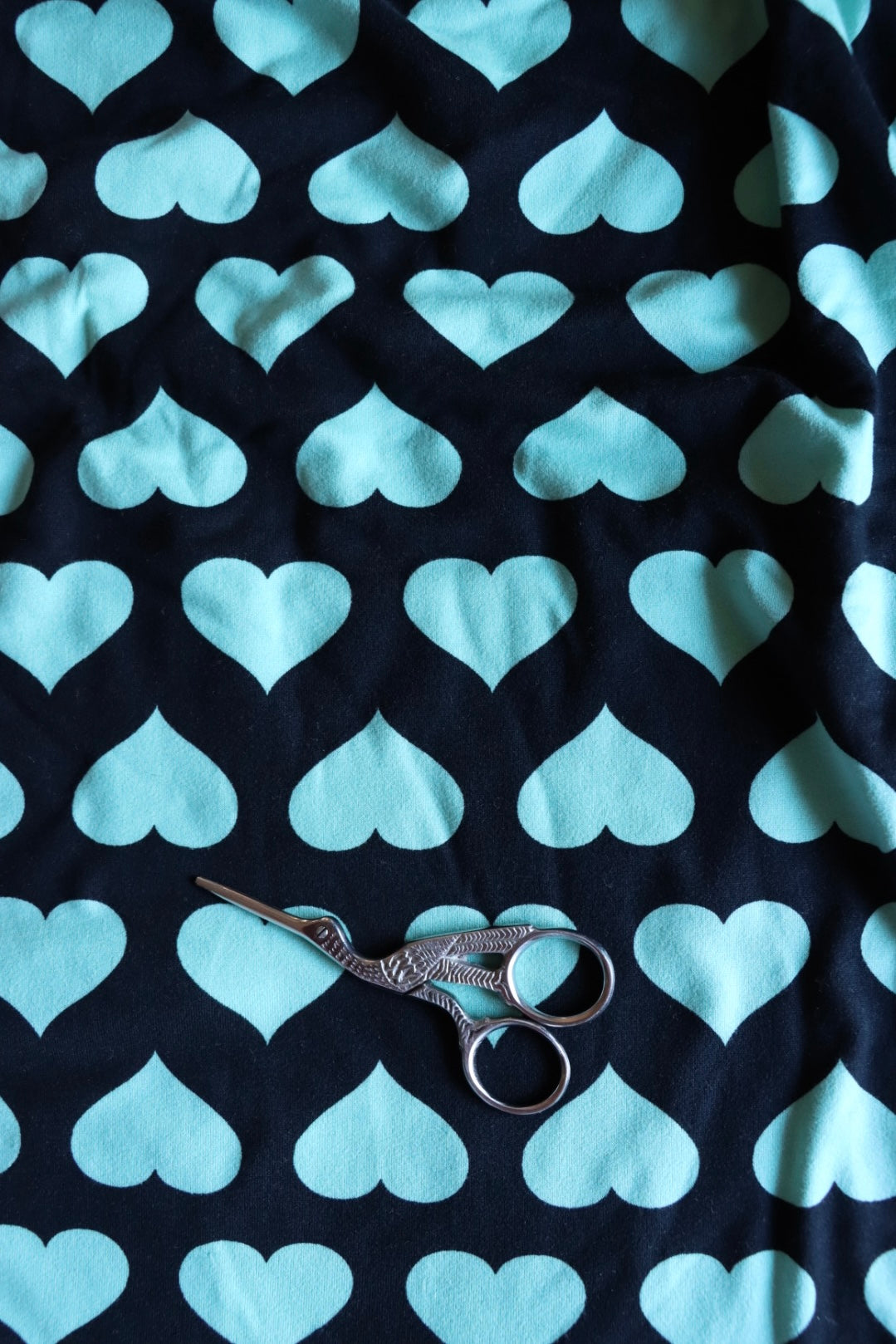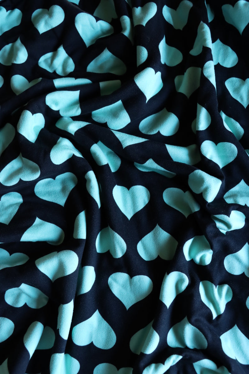 1YD Mint Hearts on Black Double Brushed Poly Jersey | Kayla's Destash