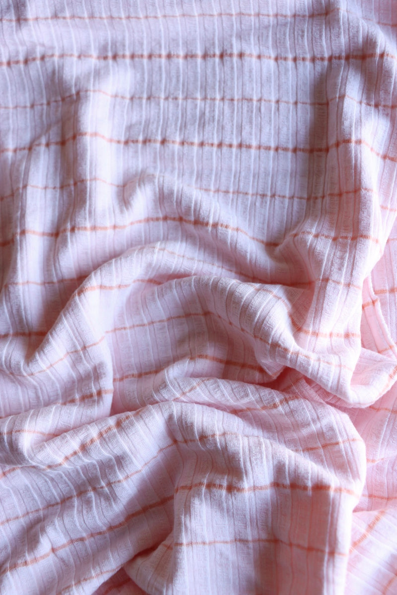 2YD 24IN Pink & Peach Stripe Lightweight Rib Knit | Kayla's Destash