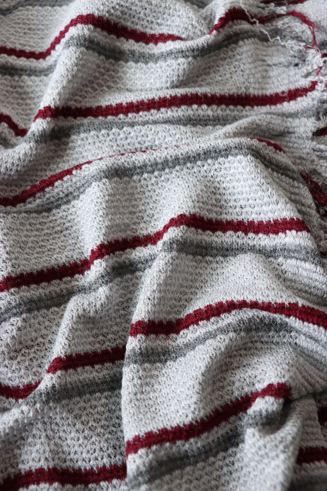 3YD Gray/Burgundy/Dk Gray Stripe Loose Weave Waffle Knit | Kayla's Des