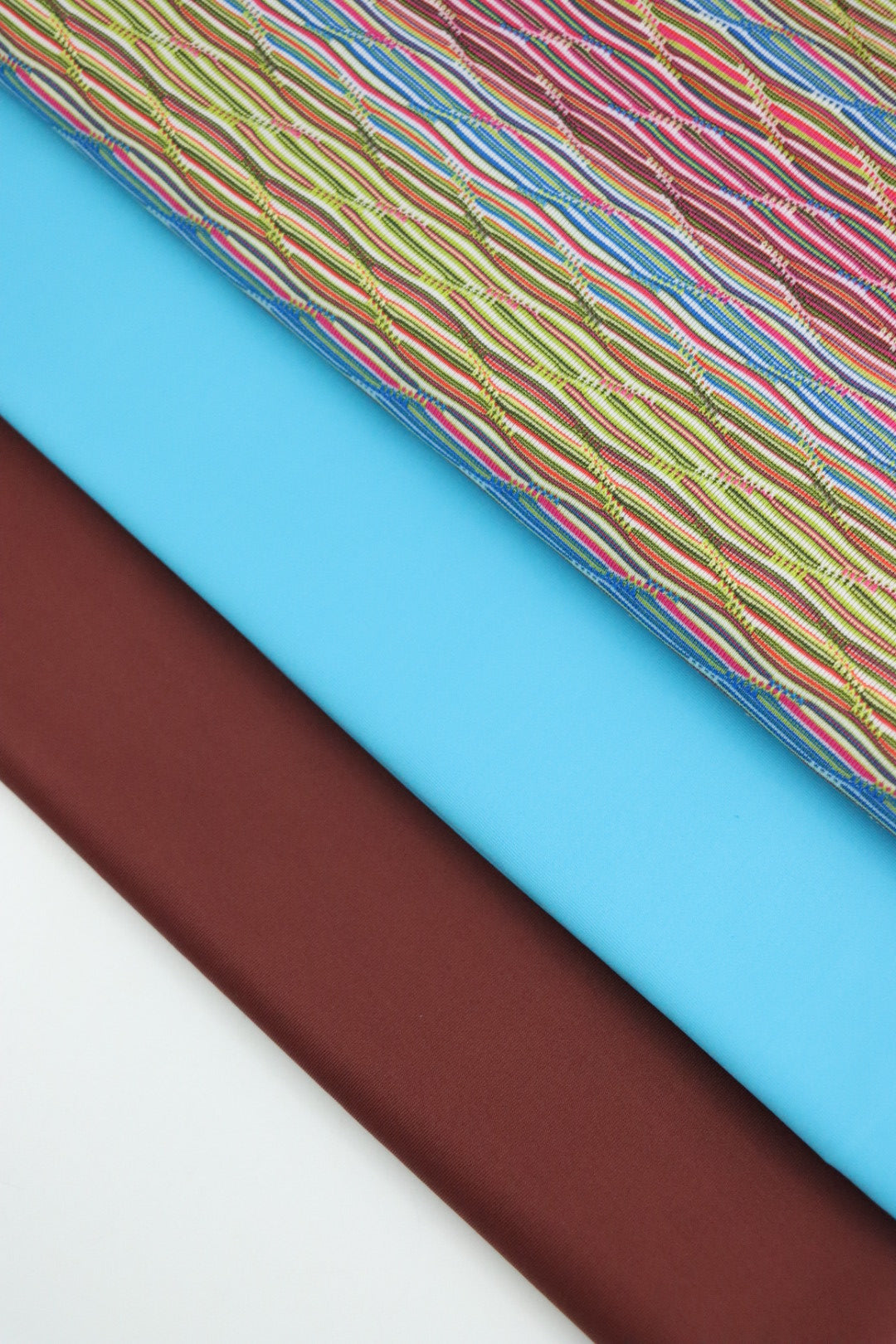 Each trio is intentionally paired to coordinate in color, print, and fabric hand, creating a cohesive bundle that’s ready for everything from streamlined activewear to mix-and-match swim sets. The selection is deliberate, giving you a beautifully balanced palette without the overwhelm of choosing individual cuts.
