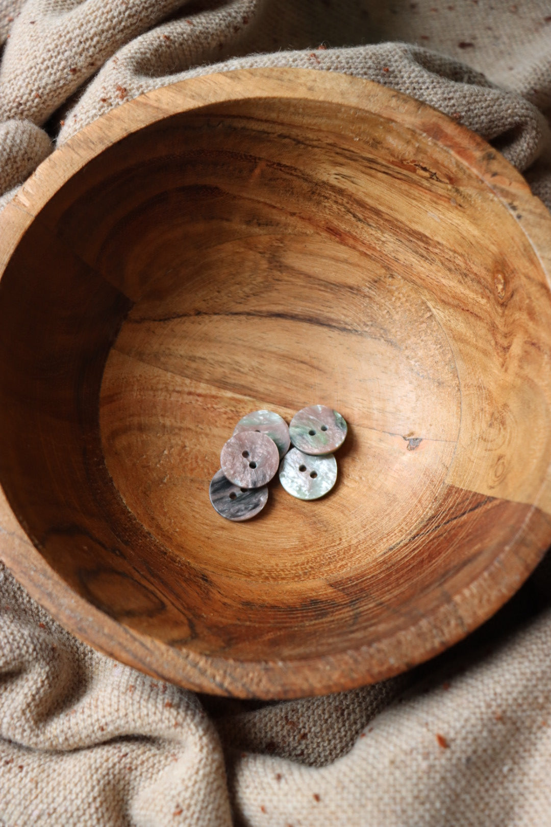 Classic and versatile, these polyester buttons mimic the luminous beauty of real mother of pearl while offering the durability and consistency of modern materials. Their subtle shimmer and iridescent finish make them an elegant choice for everything from blouses and dresses to cardigans and lightweight jackets.