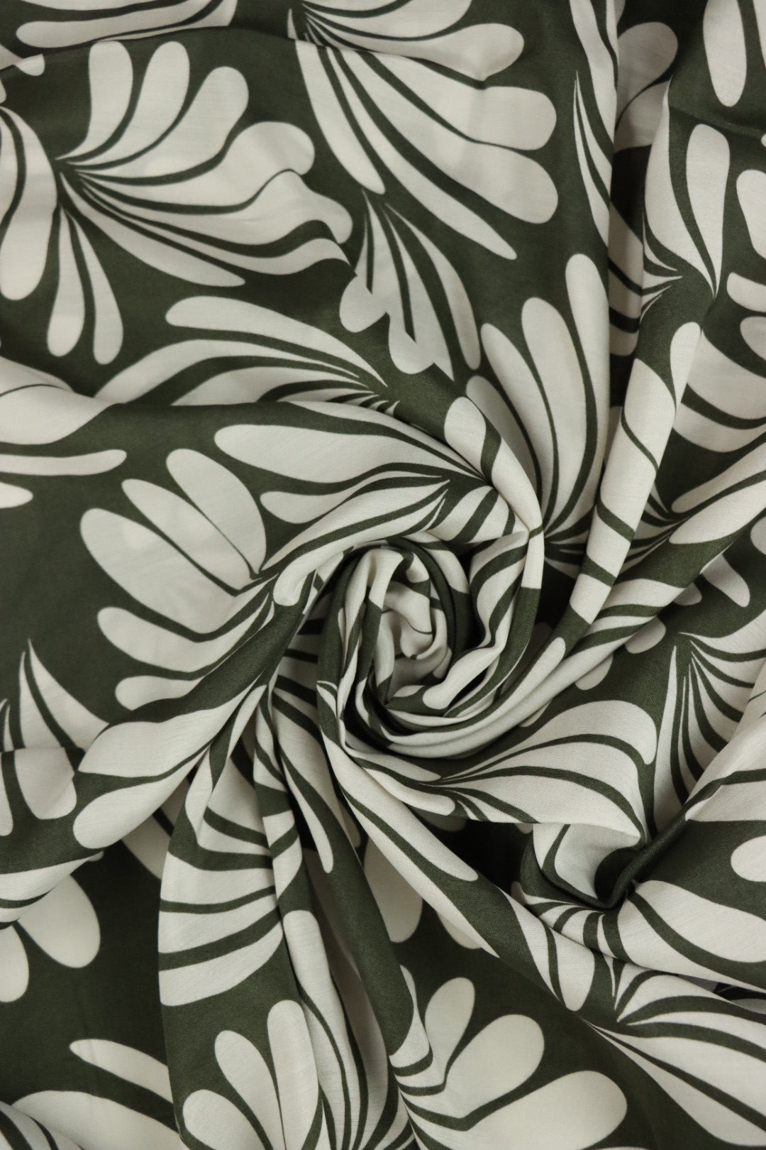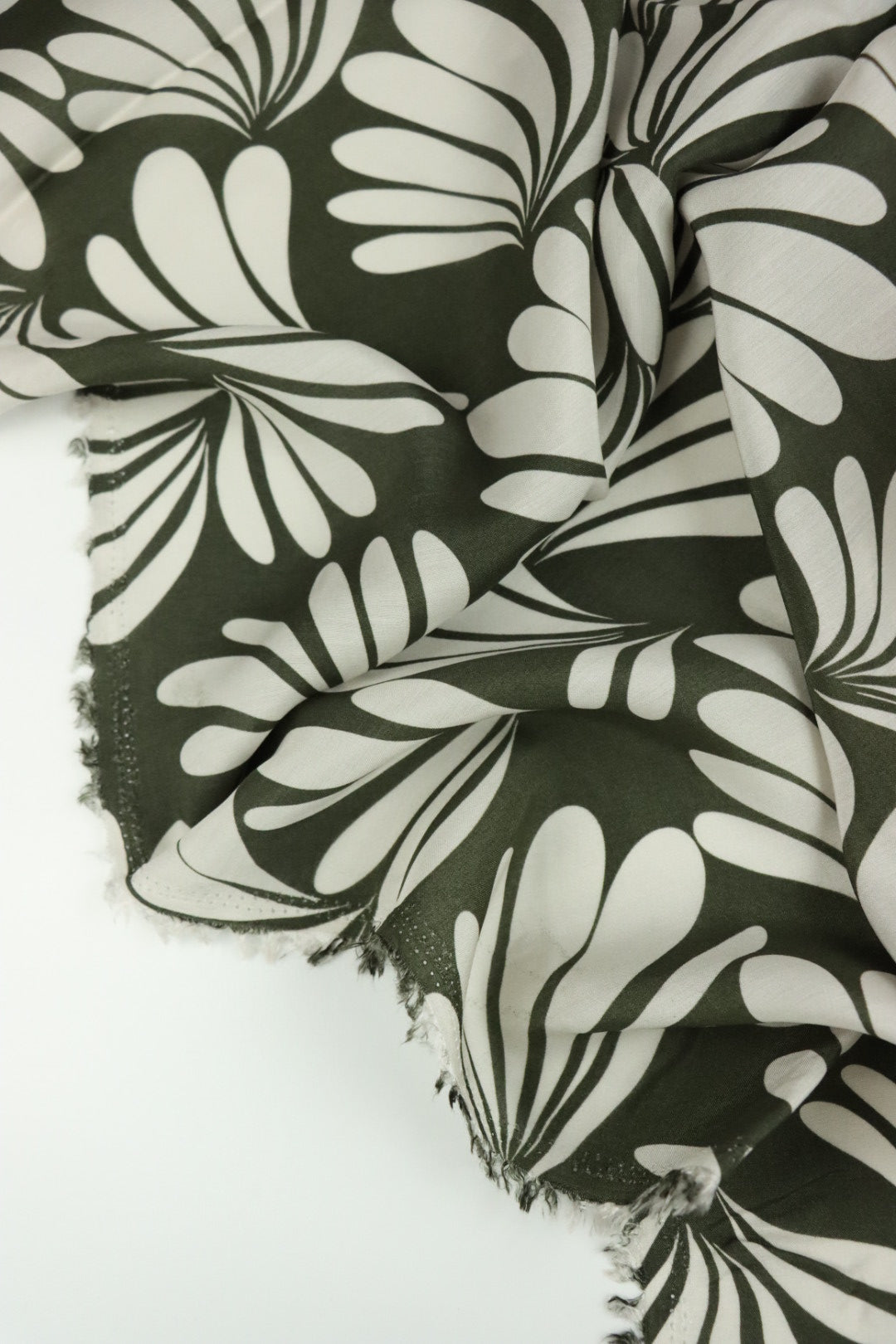 Ivory Botanic on Olive Viscose Sateen | Designer Deadstock