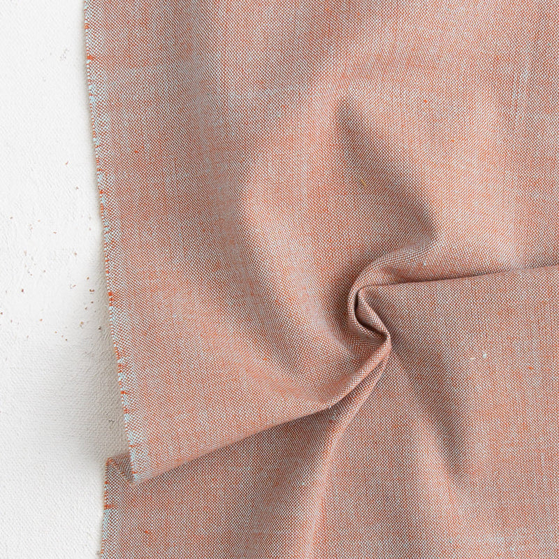 These yarn-dyed cotton wovens have a soft, breathable hand with a light to medium weight that makes them easy to wear across seasons. The weave gives them a subtle texture and gentle structure, while still allowing for comfortable movement.