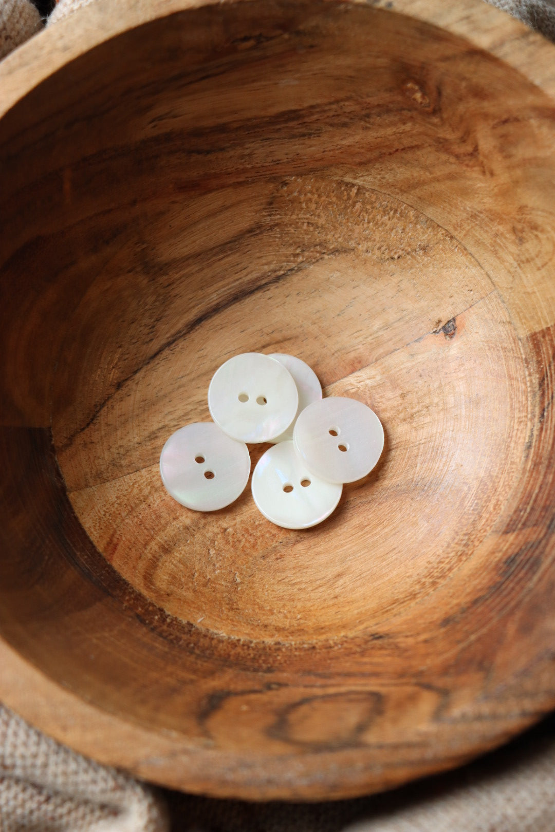 Classic and versatile, these polyester buttons mimic the luminous beauty of real mother of pearl while offering the durability and consistency of modern materials. Their subtle shimmer and iridescent finish make them an elegant choice for everything from blouses and dresses to cardigans and lightweight jackets.