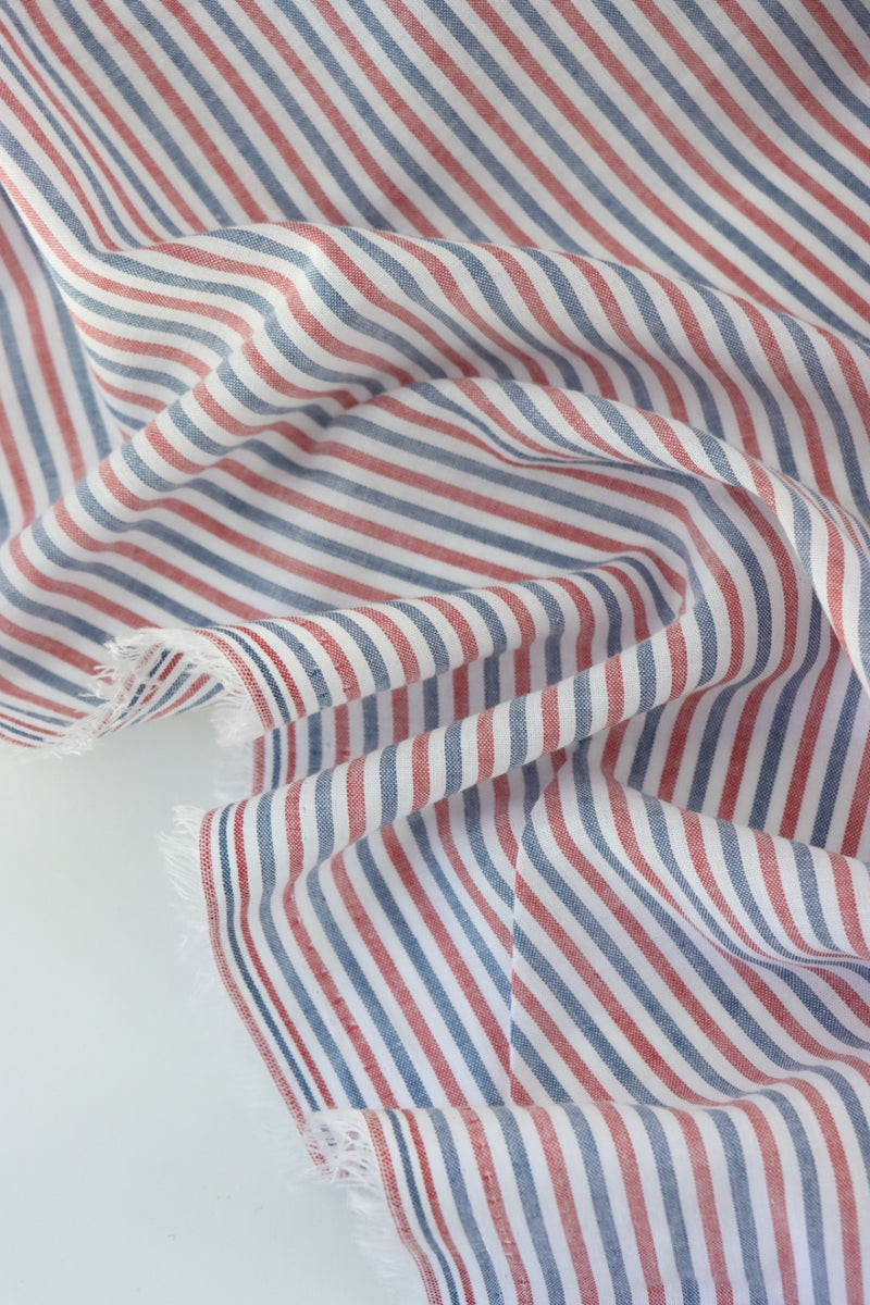 Red, White & Blue Mini Stripe Cotton Shirting | Designer Deadstock