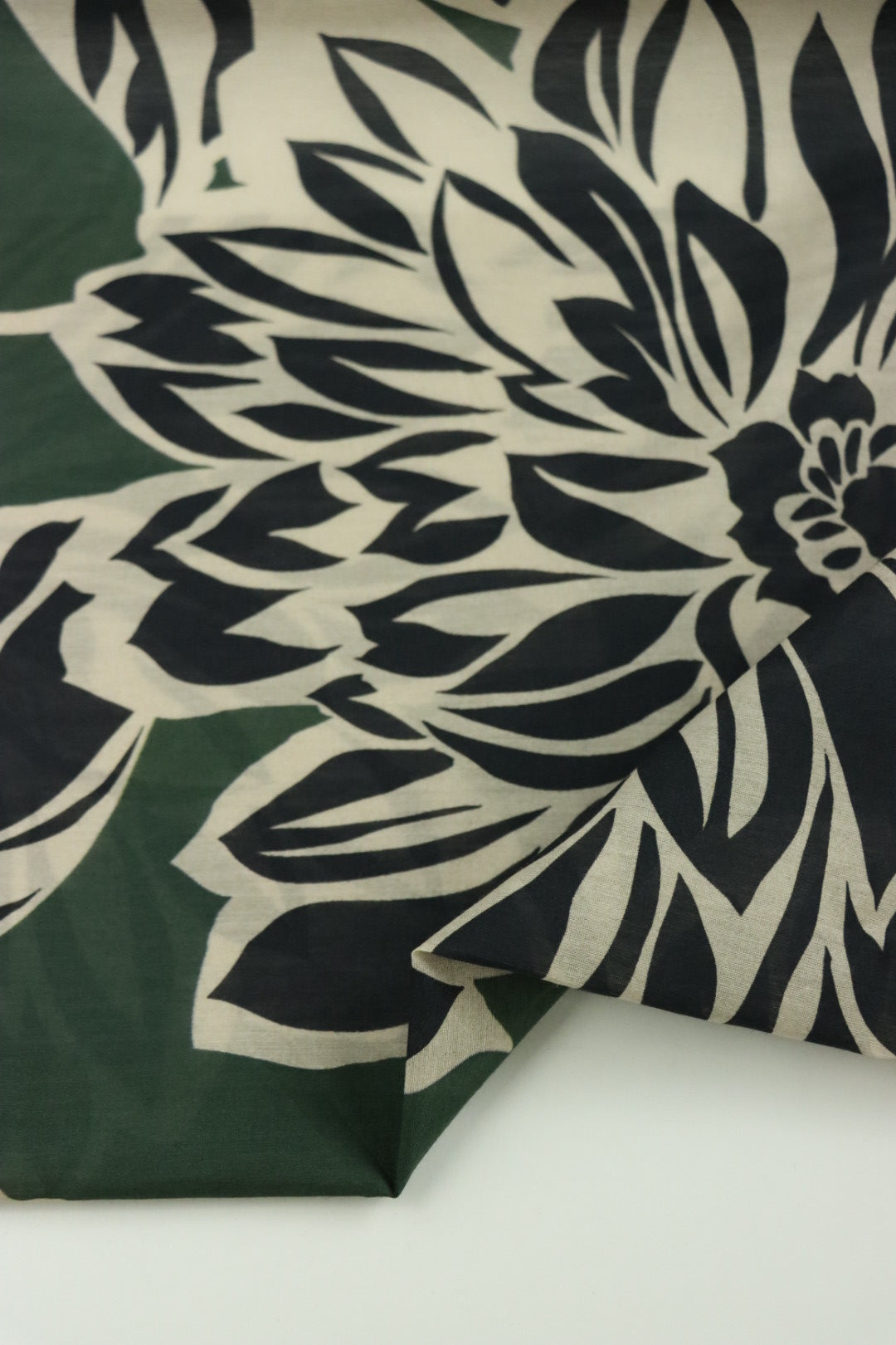 Load image into Gallery viewer, 1YD 29IN REMNANT; Black Floral Outlines on Hunter Green Cotton Lawn | Designer Deadstock