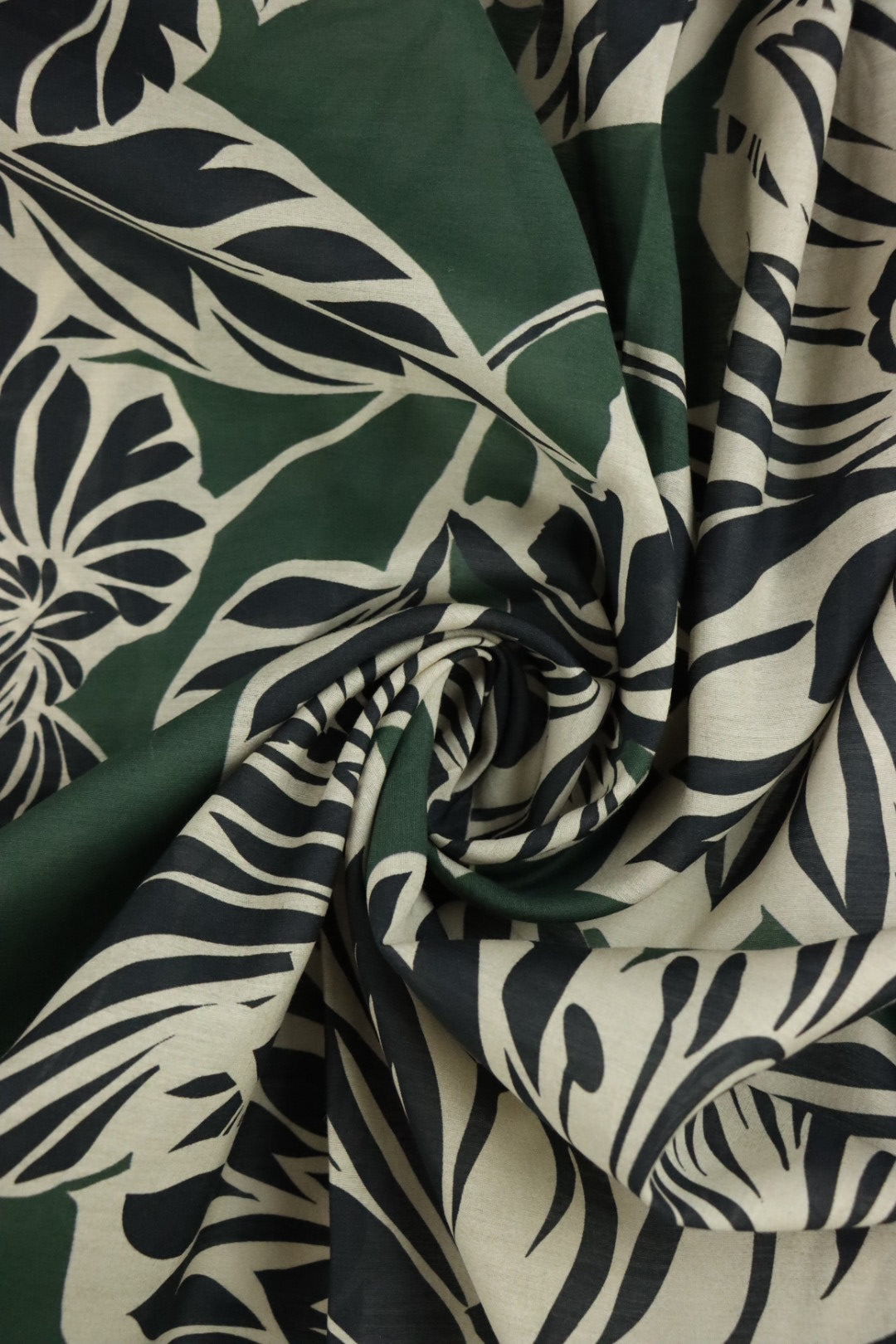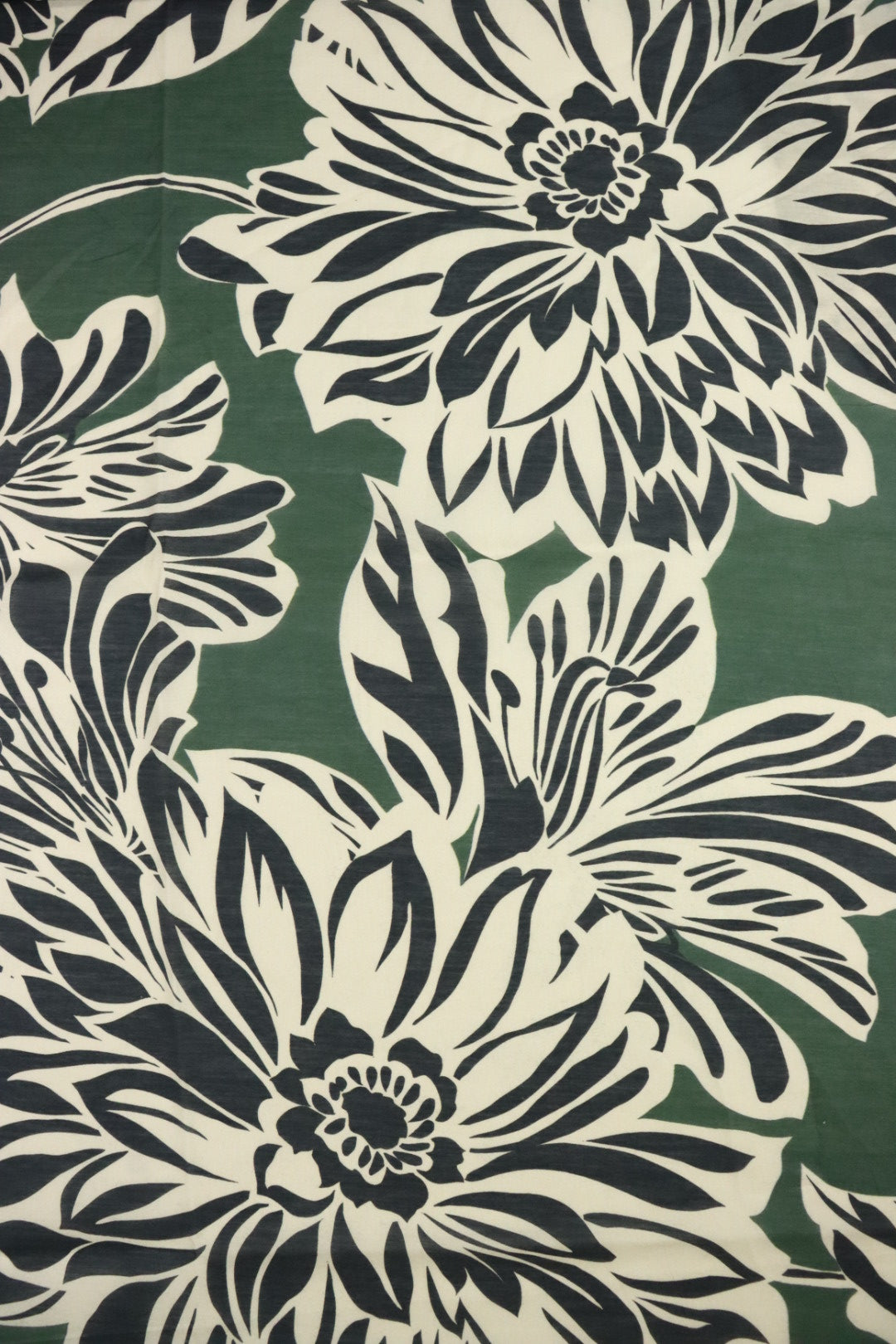 1YD 29IN REMNANT; Black Floral Outlines on Hunter Green Cotton Lawn | Designer Deadstock