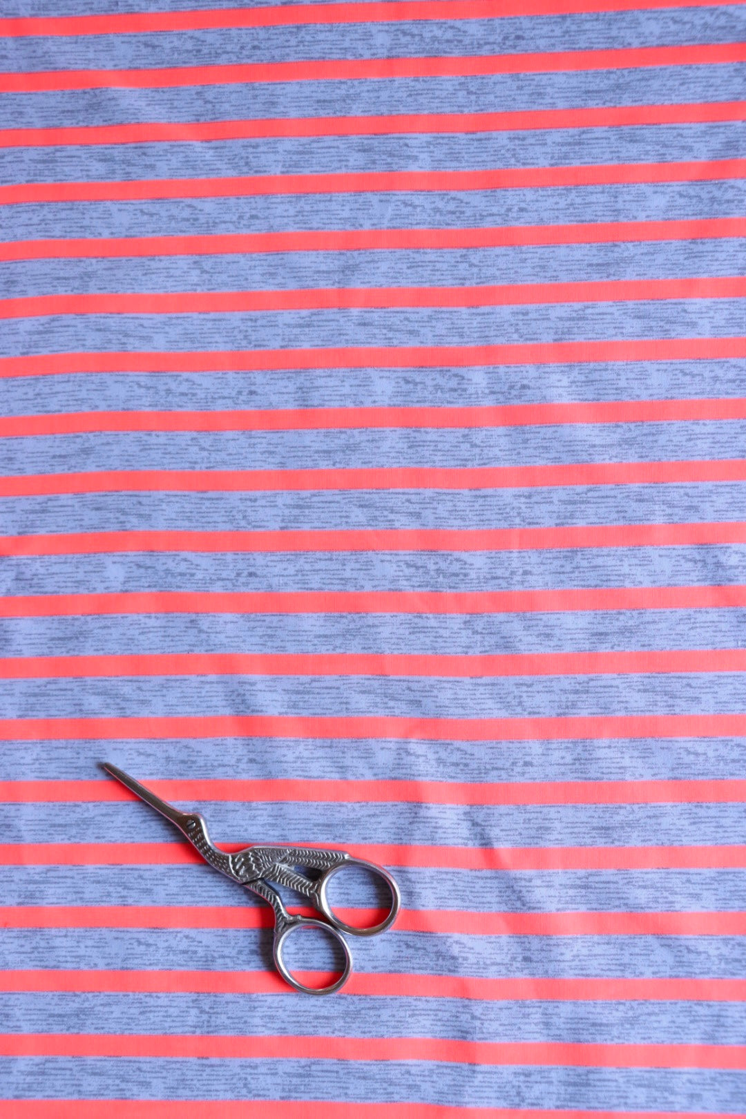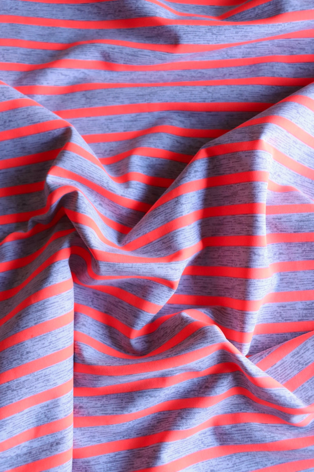 2YD 24IN Striated Gray & Neon Orange Stripe Swim Nylon Spandex | Kayla's Destash