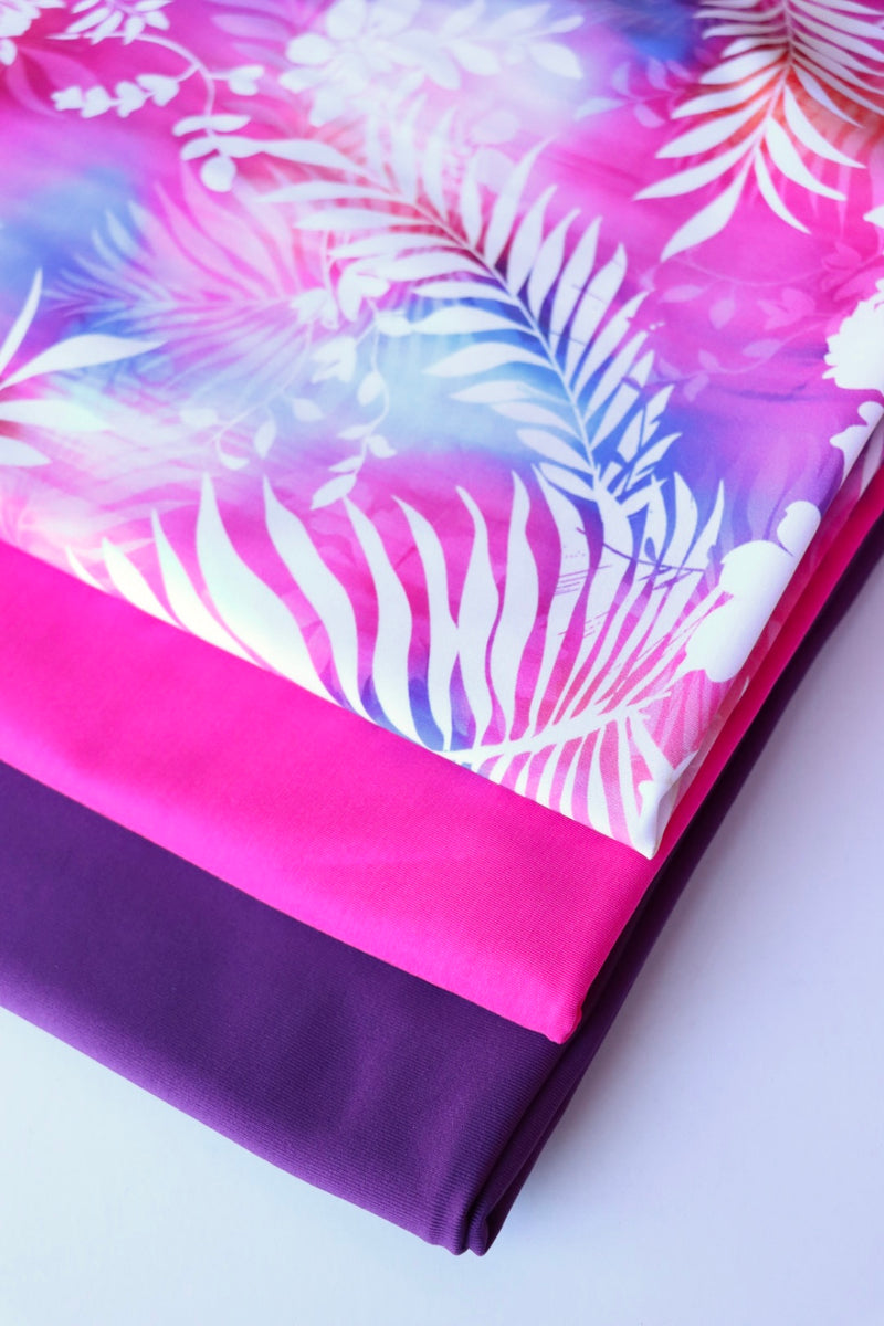 Each trio is intentionally paired to coordinate in color, print, and fabric hand, creating a cohesive bundle that’s ready for everything from streamlined activewear to mix-and-match swim sets. The selection is deliberate, giving you a beautifully balanced palette without the overwhelm of choosing individual cuts.