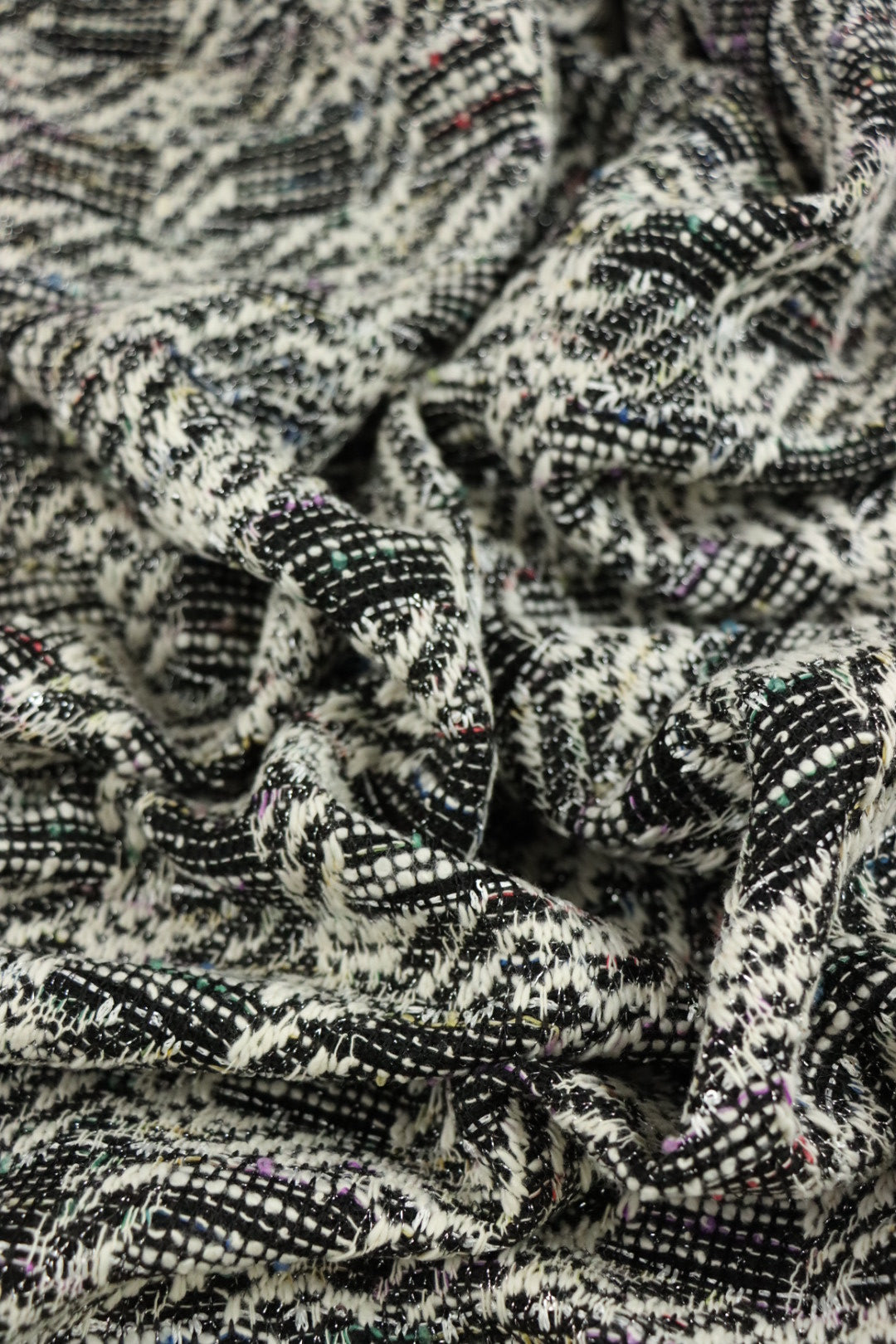 Black Tweed Boucle Jacquard Knit W/ Mini Sequins