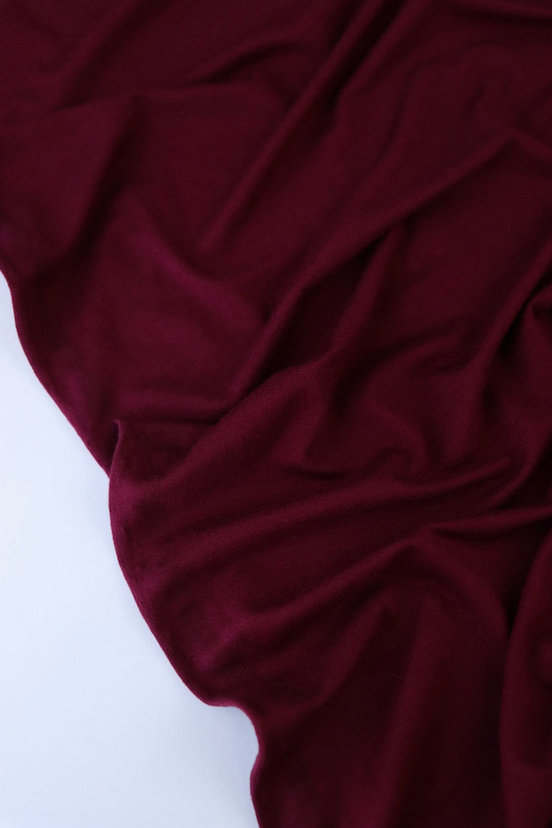 Really soft and drapey - will be perfect for tanks and tees. Beautiful color - more purple than red in my opinion.