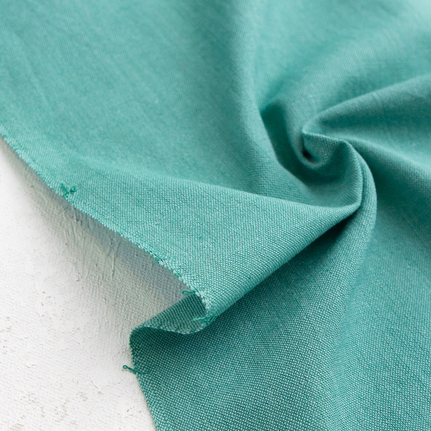 These yarn-dyed cotton wovens have a soft, breathable hand with a light to medium weight that makes them easy to wear across seasons. The weave gives them a subtle texture and gentle structure, while still allowing for comfortable movement.