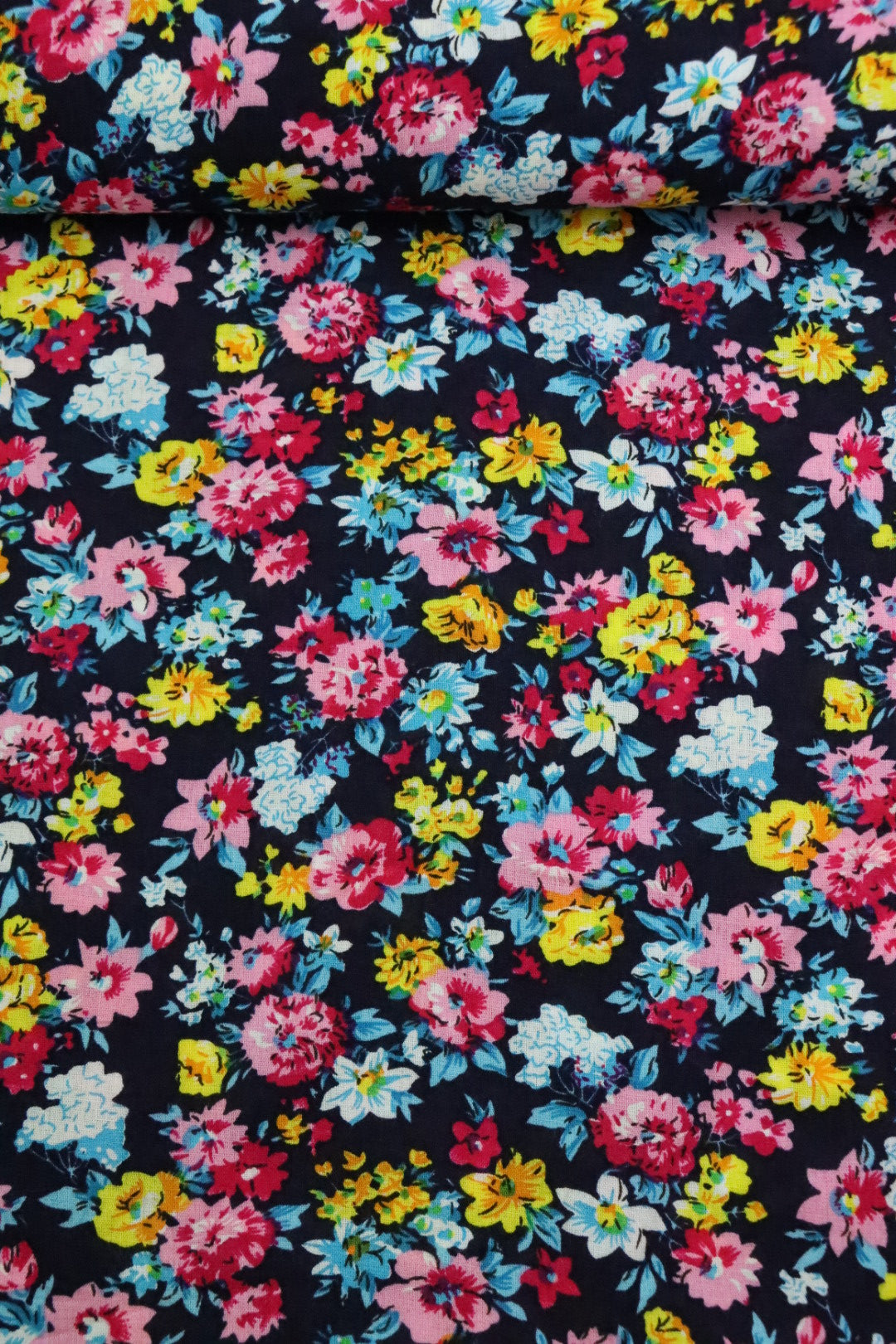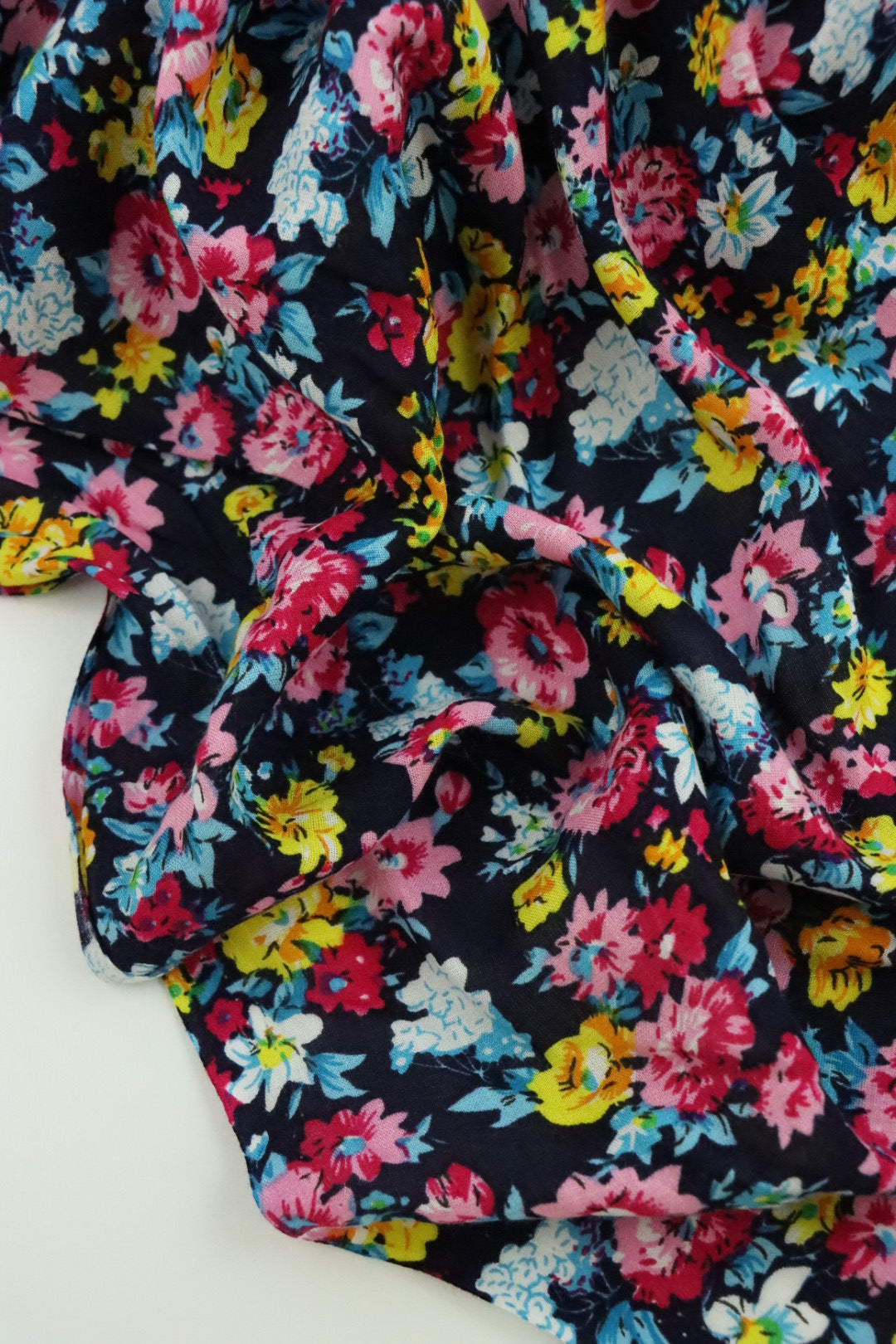 Load image into Gallery viewer, Flower Bed on Navy Rayon Challis