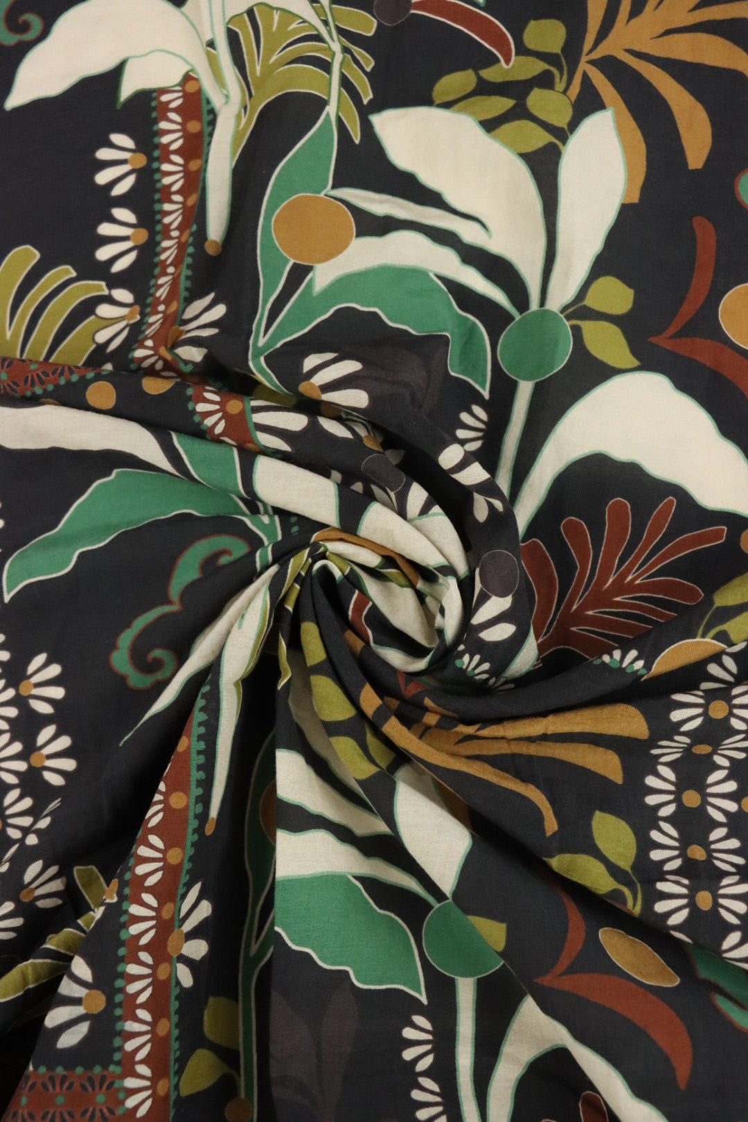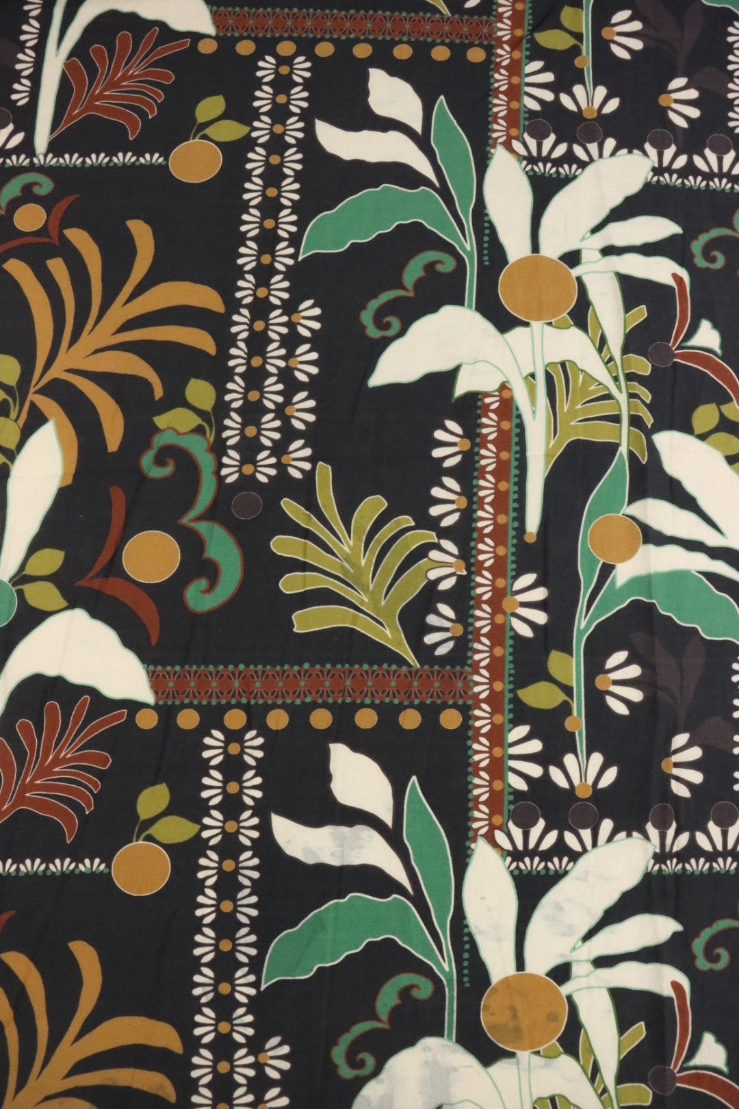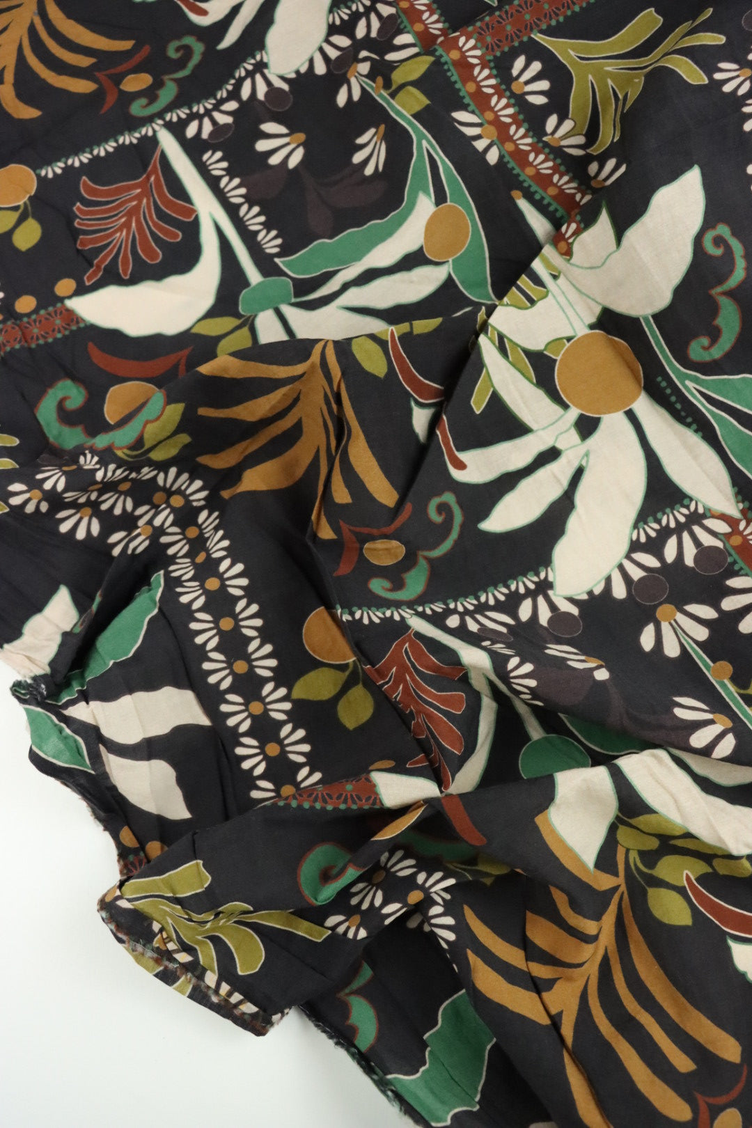 Green & Mustard Floral on Black Cotton Lawn | Designer Deadstock
