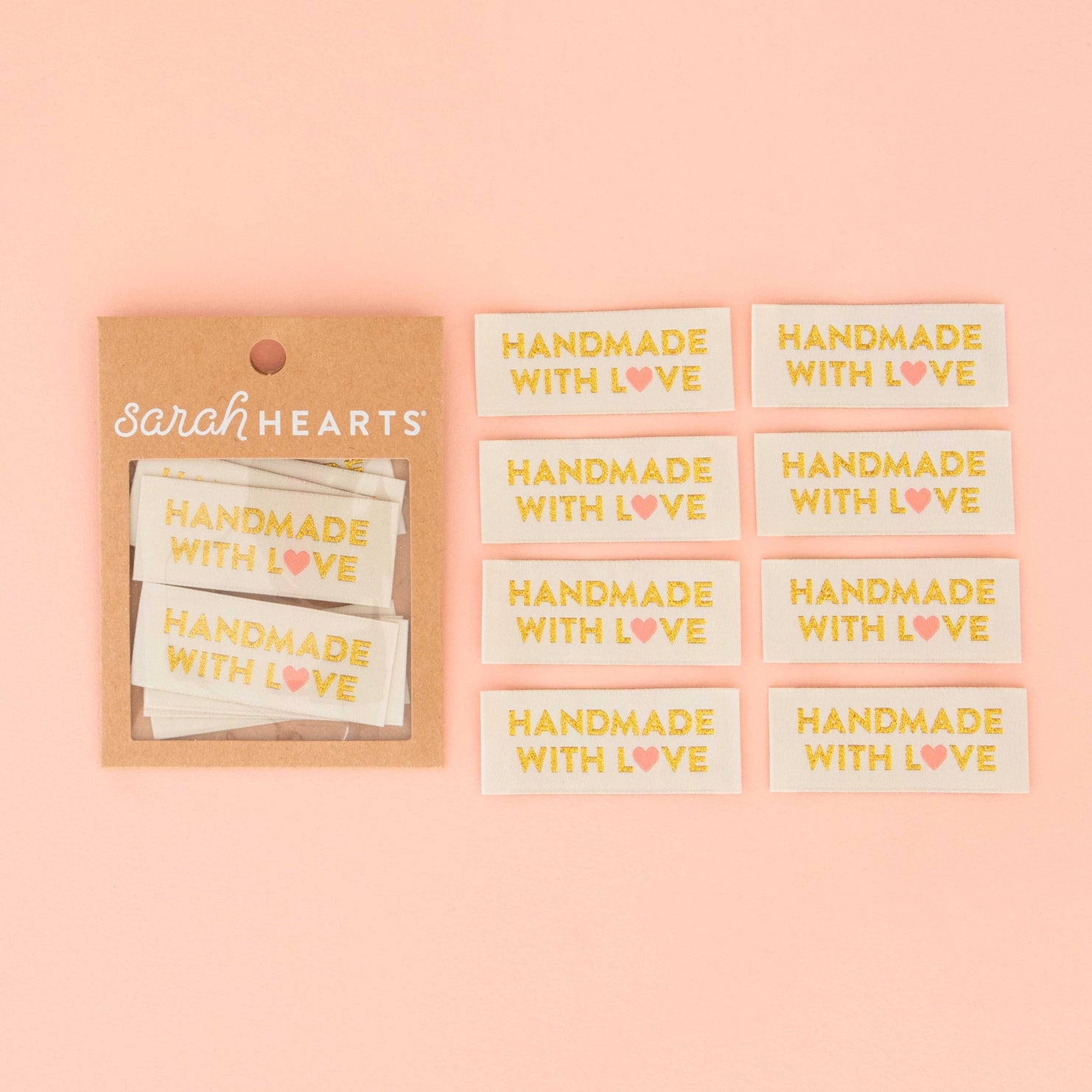 Handmade With Love Woven Labels | Pack of 8 | Sarah Hearts