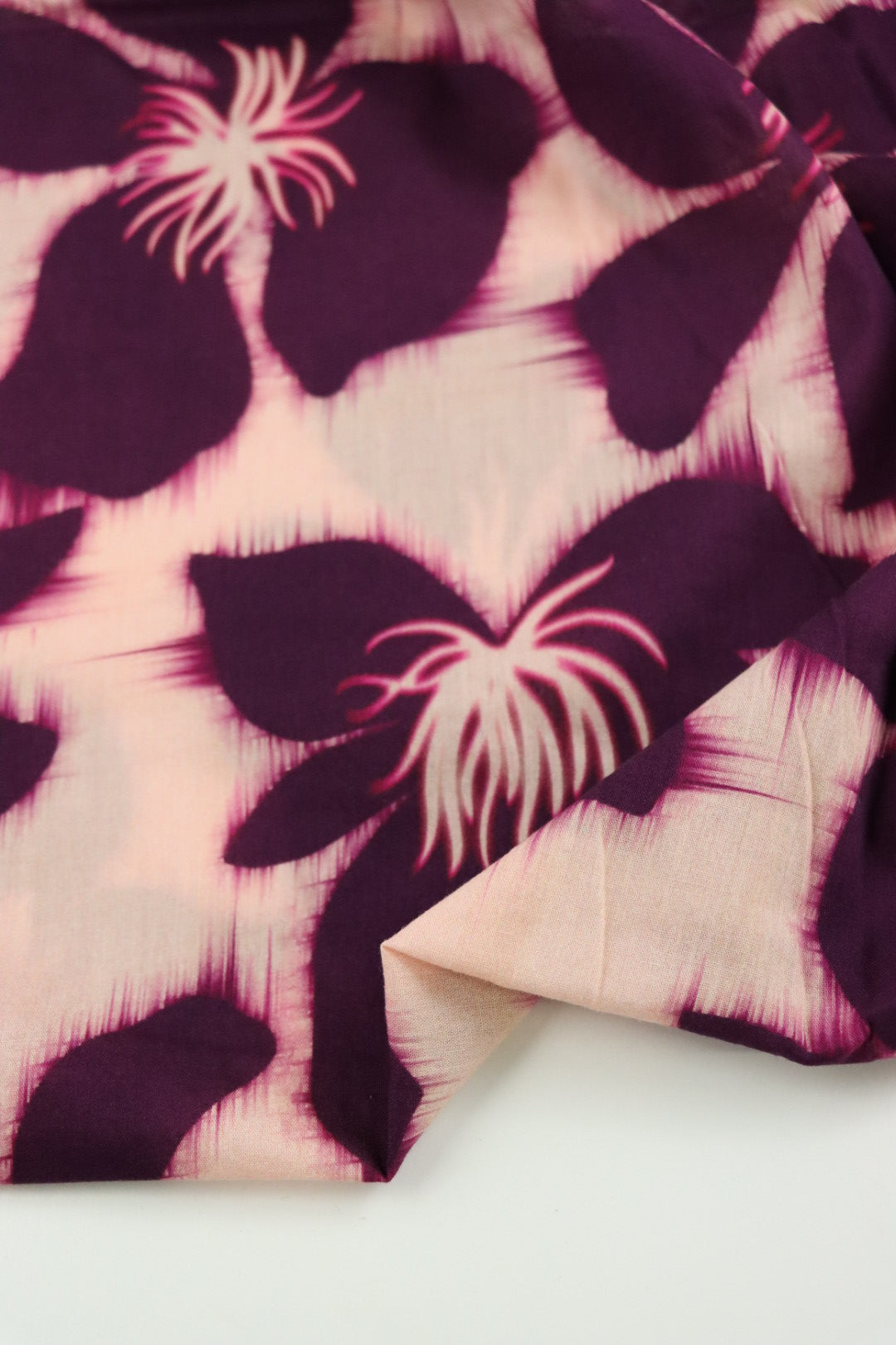 Plum & Magenta Shibori Flowers Cotton Lawn | Designer Deadstock