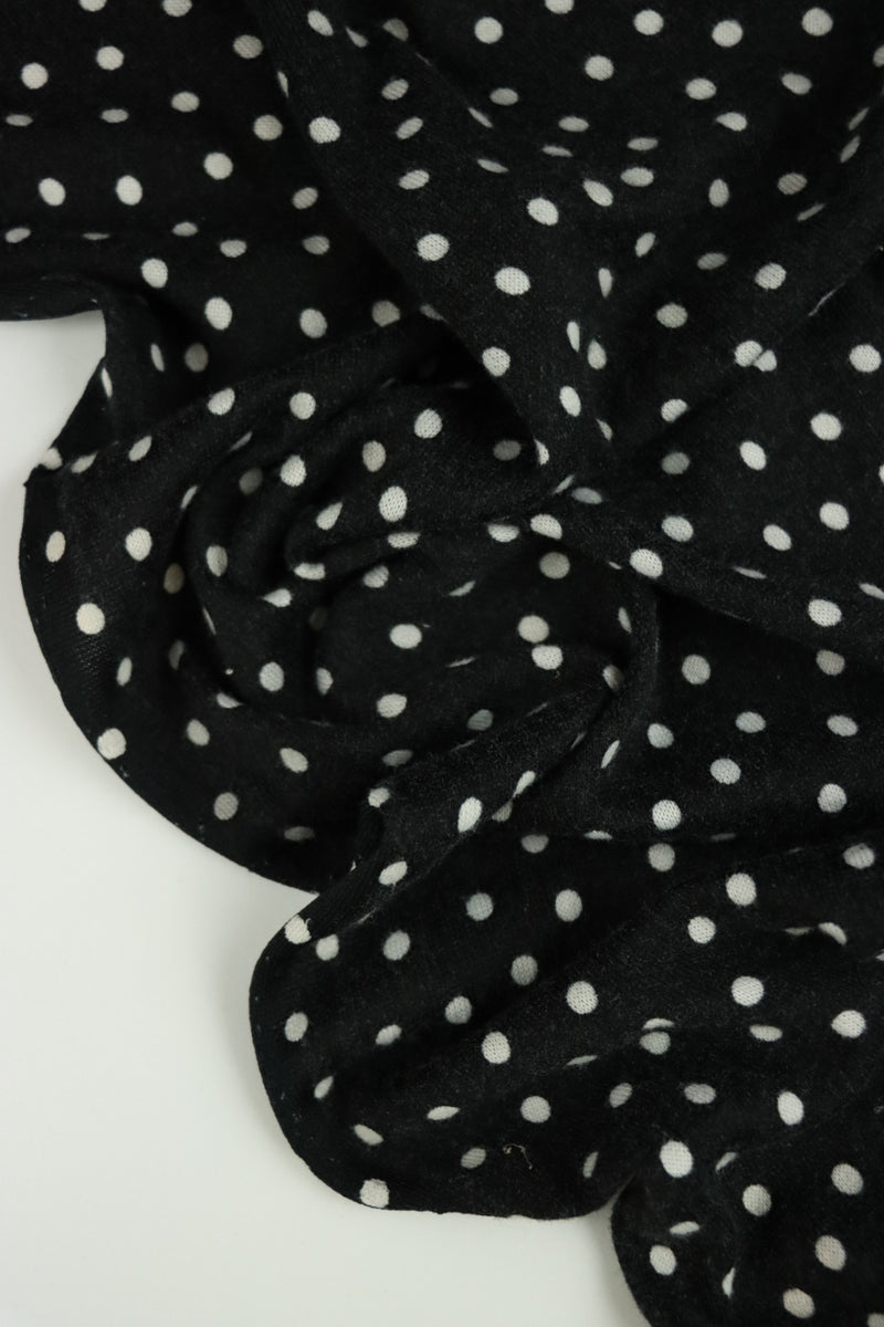 Polka Dots on Black Brushed Hacci Sweater Knit