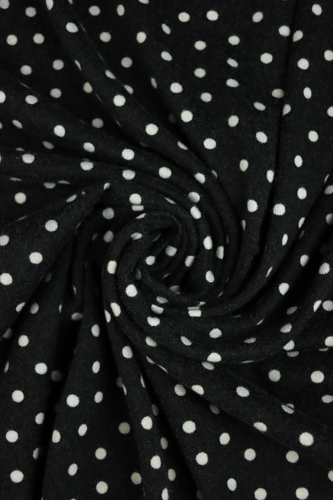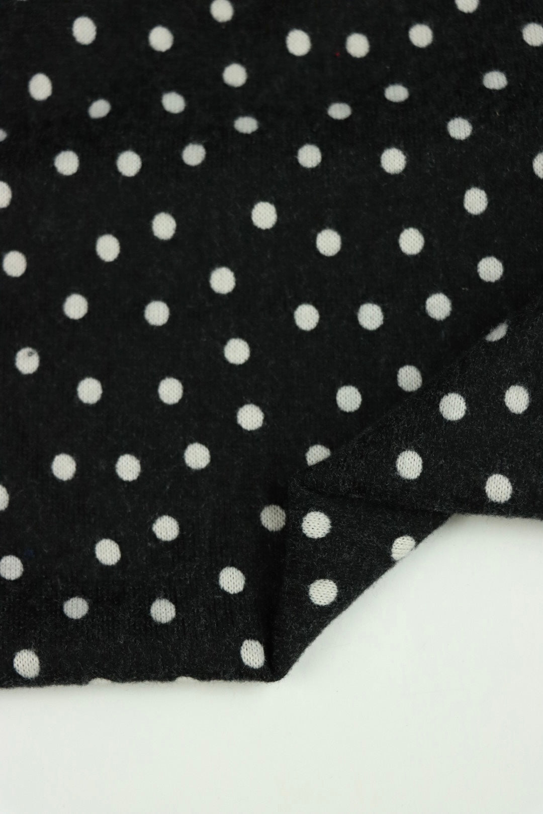 Polka Dots on Black Brushed Hacci Sweater Knit