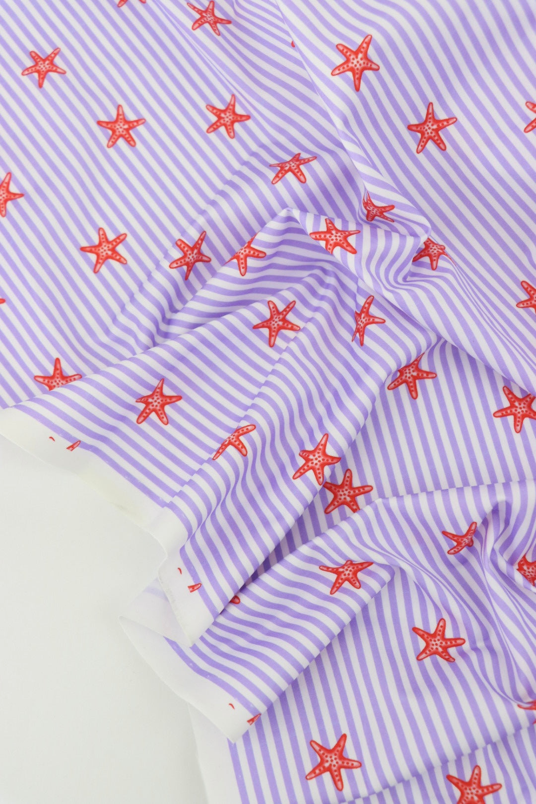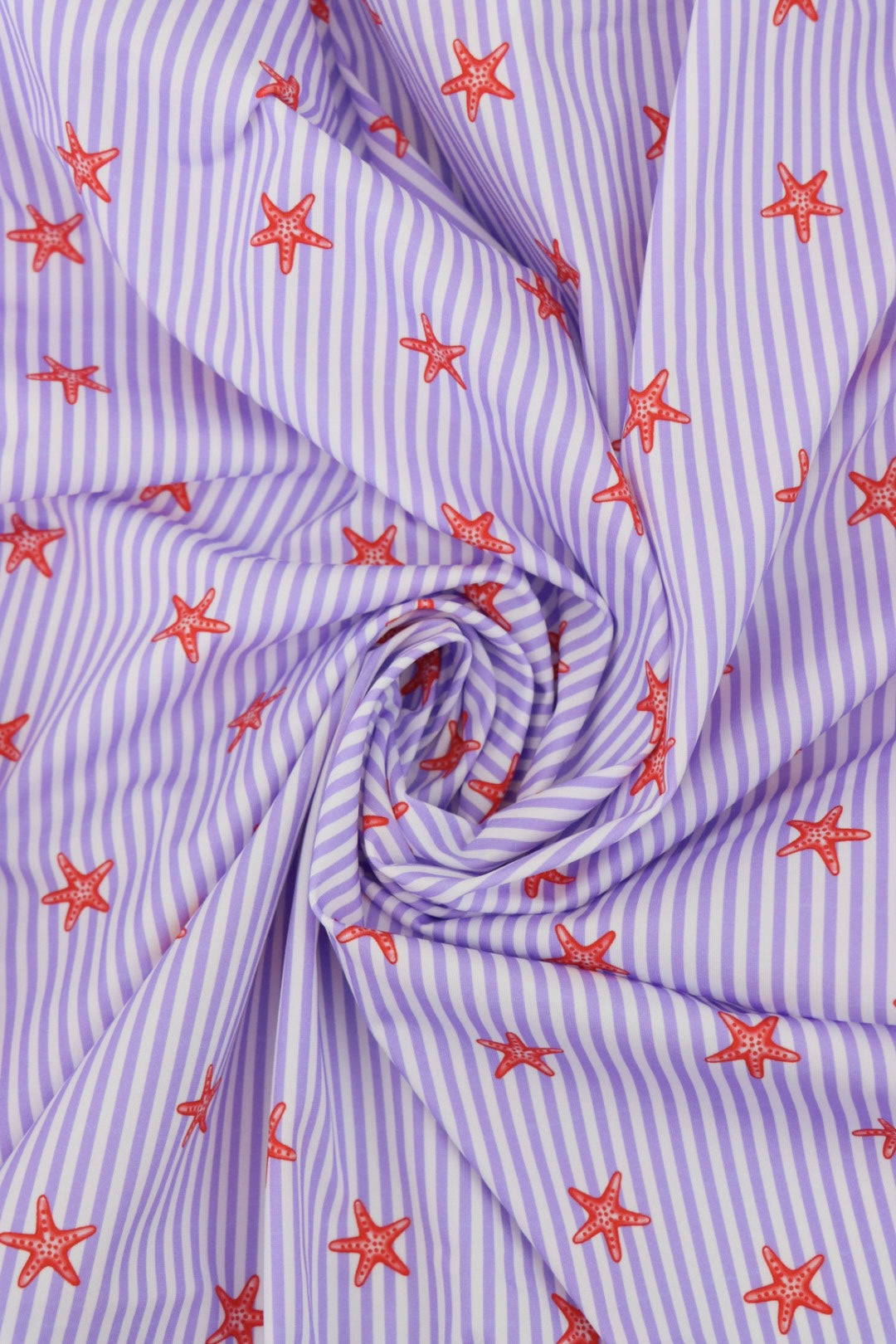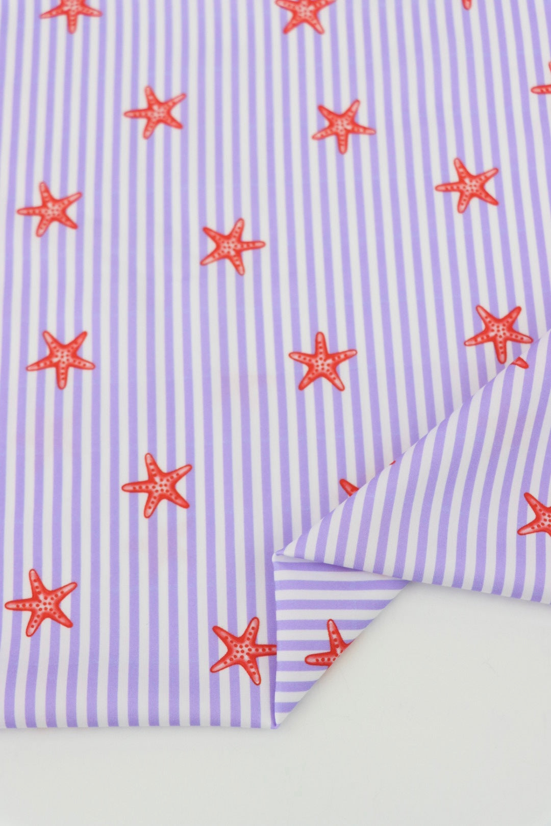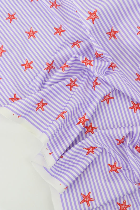Tiny Starfish on Lavender Vertical Stripe Swim Tricot | Italian Designer Deadstock | By The Half Yard