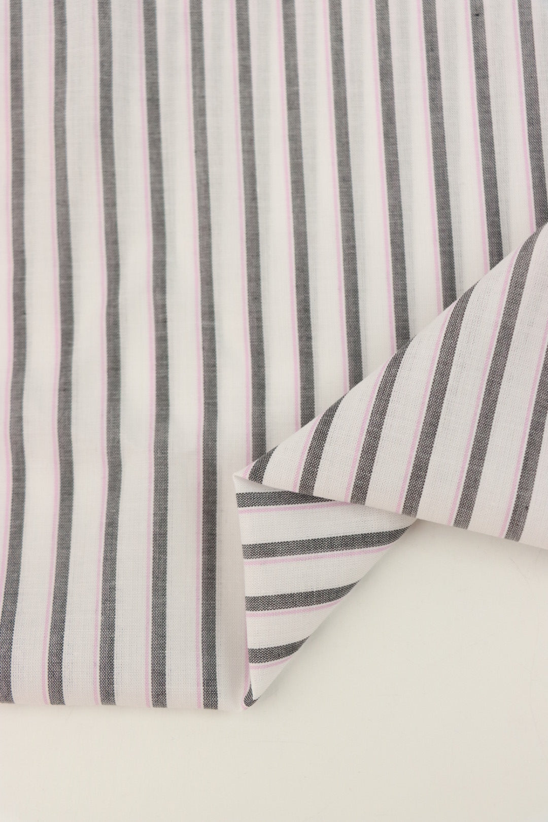 White/Ice Pink/Black Stripe Cotton Shirting | Designer Deadstock